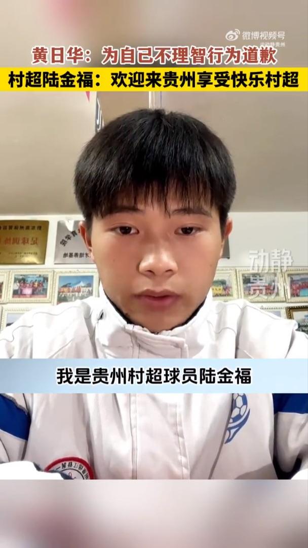 至於當日有份參與賽事的球員陸金福,亦拍片回應黃日華,他在片中稱呼黃日華為老師,他說︰「剛才看你發的視頻,被你的真誠所感動,歡迎你有時間再到貴州走走,一起享受快樂足球,快樂村超!踢球嘛,難免會有一些身體上的激烈碰撞,大家求勝心切。這次能去香港踢球我覺得非常開心,第一次見到這麼多明星,而且都沒有什麼架子,從下高鐵開始就感受到了你們的熱情和友好。歡迎你有時間再到貴州走走,一起享受快樂足球,快樂村超!」