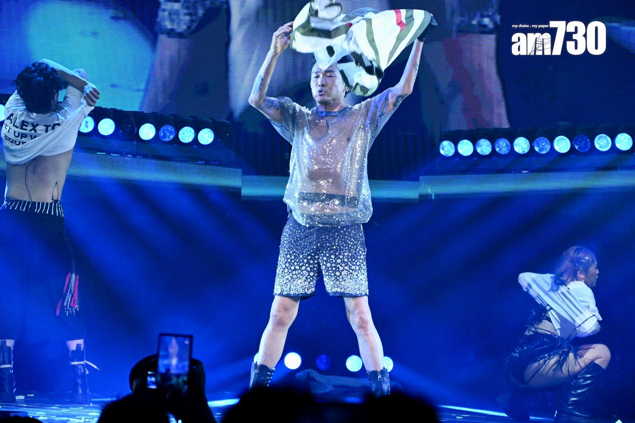 其後Alex除掉上身外套大唱《脫掉》,露出see through短袖歌衫,此時台下觀眾再次high爆起身跟住唱,就連曾志偉、鍾鎮濤等也起身跟住跳,梁家輝更投入得拿高自己的衣服。最後,Alex脫去褲子,台上的dancers亦跟住脫去上衣,為個唱氣氛推至高峰。