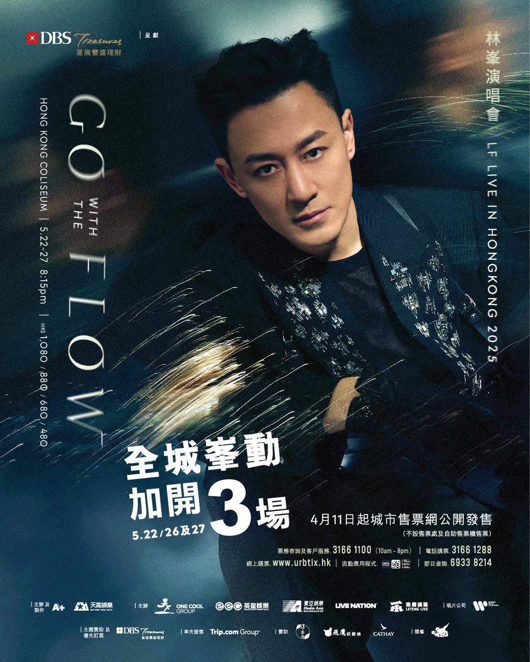 2024年5月,香港人見證陳洛軍在「九龍城寨」發光發熱,時隔一年,2025年5月,林峯將假「紅館」捲起又一次風暴,其相距九年的香港演唱會【GO WITH THE FLOW 林峯演唱會 LF LIVE IN HONG KONG 2025】,甫公布旋即掀起撲飛熱,5月23、24、25日三場門票日前接受優先訂票已火速售罄,反應熱烈!