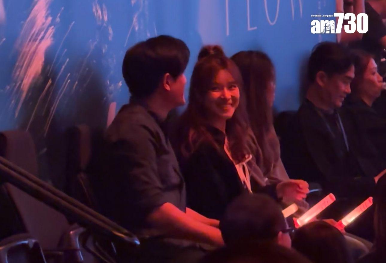 伍允龍與李蔓瑩一齊入場睇林峯開騷,全程有講有笑。(娛樂組攝)