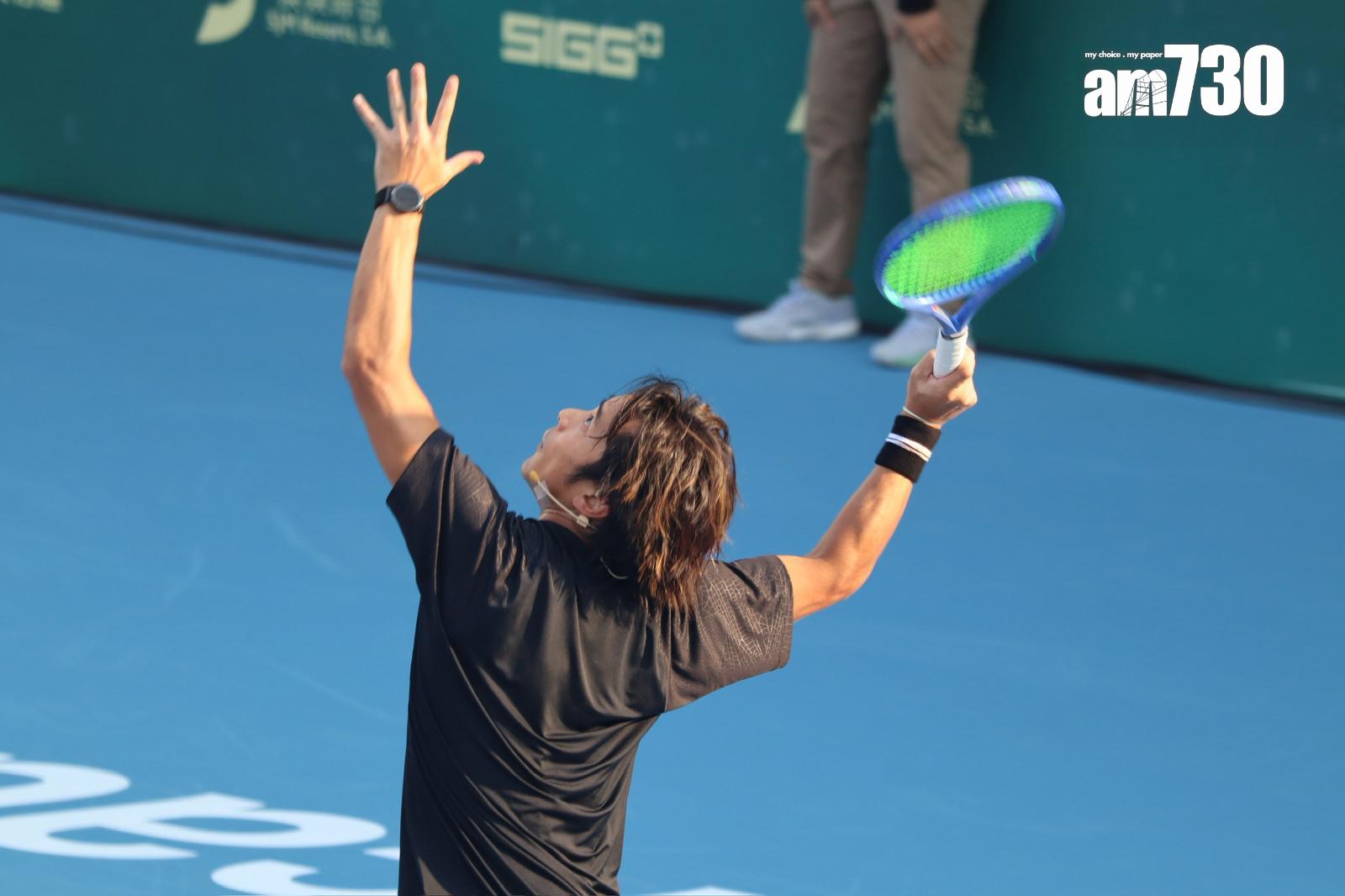 林德信昨日(6日)現身澳門出席「網球無界限名人精英表演賽」,他與黃澤林在表演賽迎戰李娜與吳尊,進行橫跨體育的表演賽。(娛樂組攝)