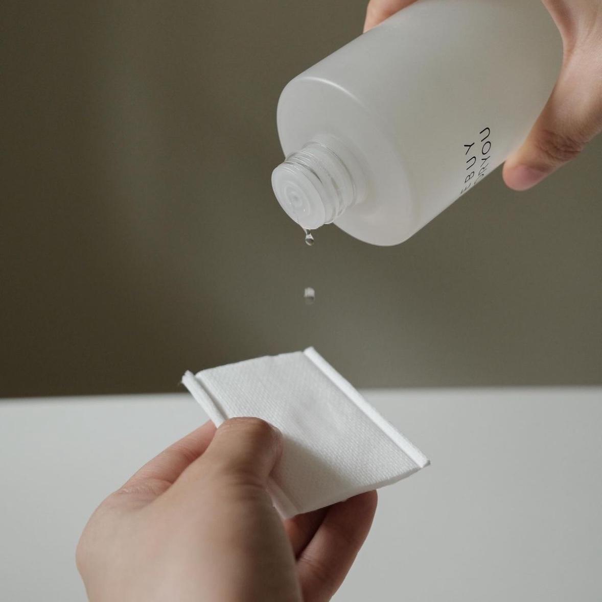 將爽膚水倒在化妝棉上濕敷,可以當作急救面膜使用。