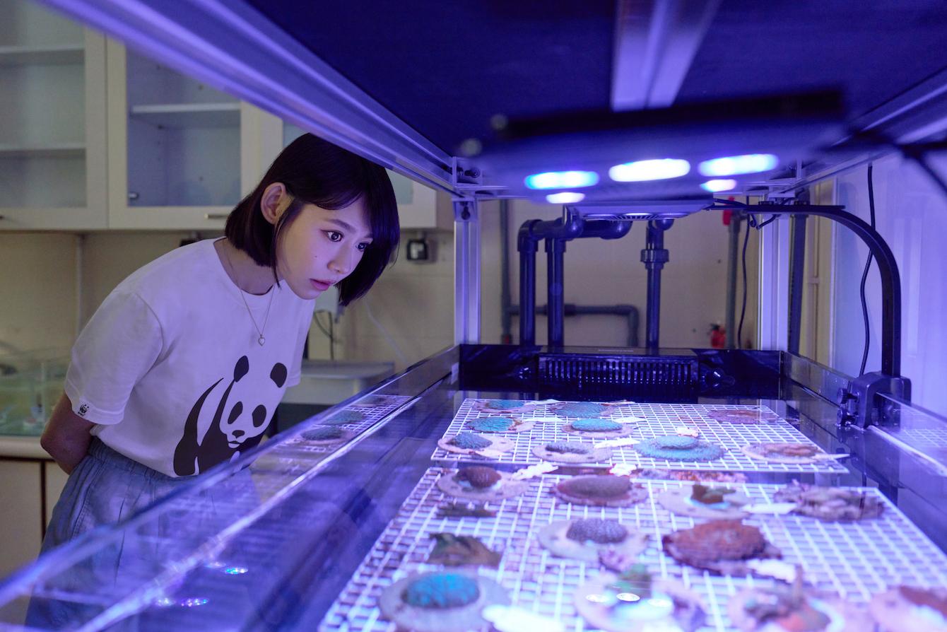 早前明禎隨WWF到海下灣海洋生物中心拍攝宣傳短片,體驗珊瑚育養嘗試親手餵飼珊瑚進食,「原來珊瑚進食時,珊瑚觸手會捉入去口裡再縮一下,感覺真的好神奇呢。我非常期待我的珊瑚BB長大後,我能再跟隨團隊將其移植到指定珊瑚修復區,回歸自然懷抱中好好生存。」片段採用「珊瑚BB」視覺,記錄明禎這位新手媽媽,凝視和呵護着珊瑚BB的時刻,充份展現其母愛。