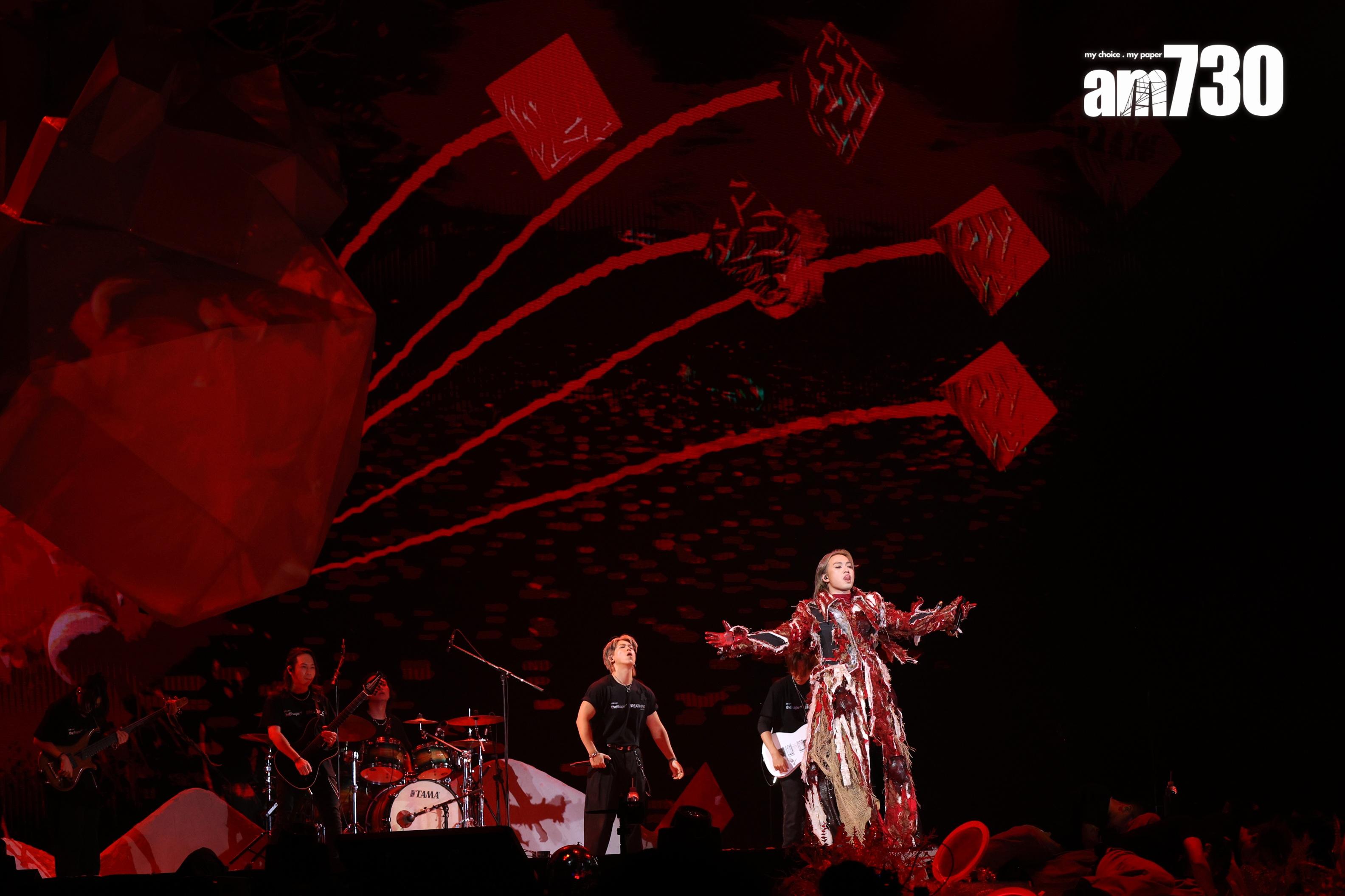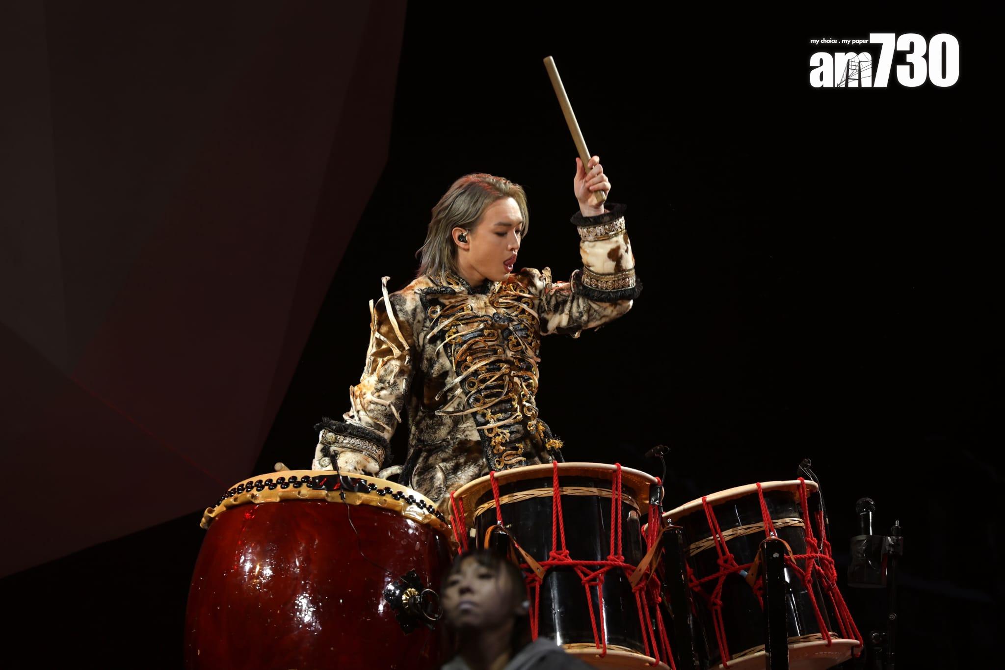 柳應廷Jer以《約齊靈魂在墳墓開生日派對》為演唱會掀序幕,大展鼓技。(娛樂組攝)