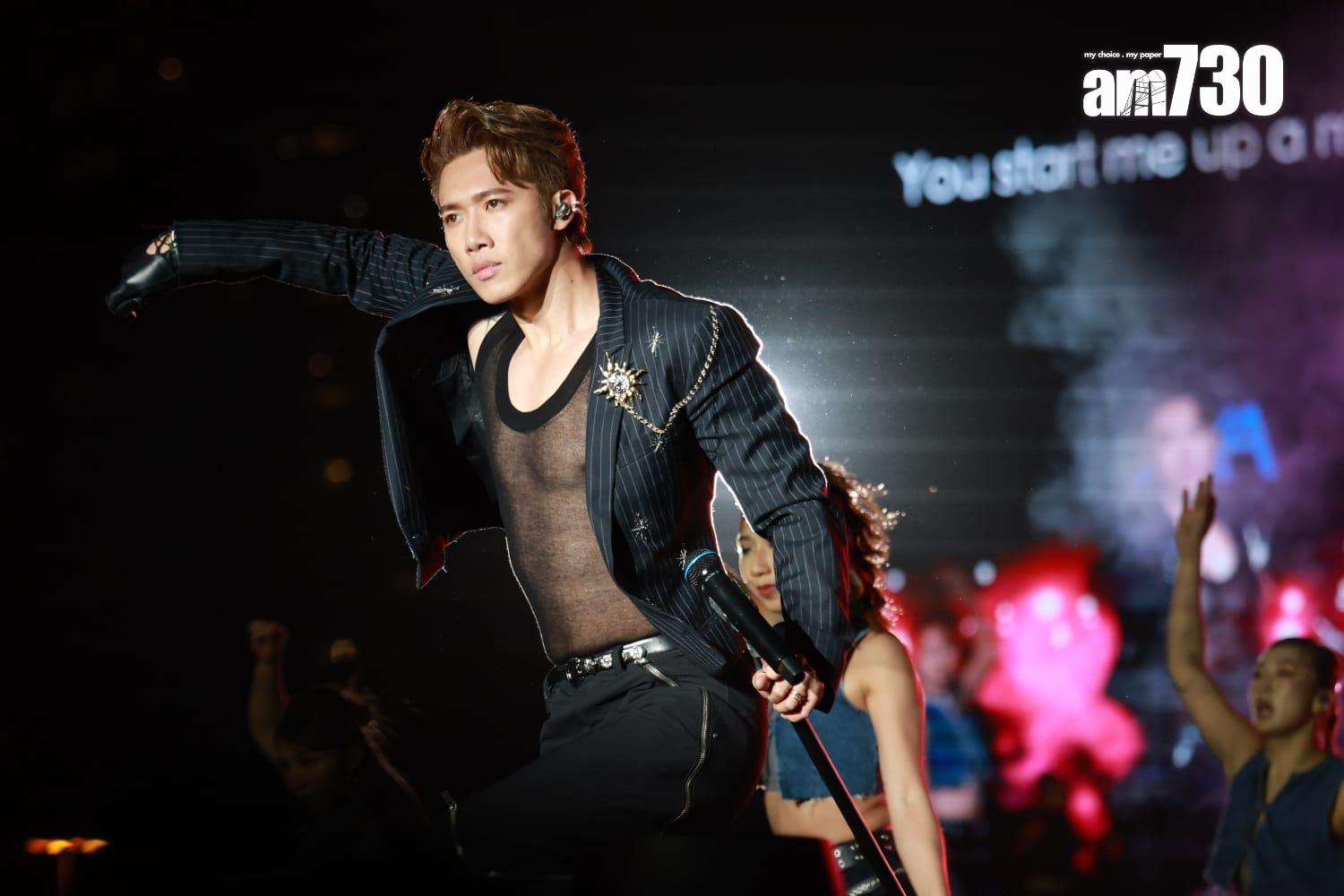 談到Stanley透視裝上陣,抬起女舞蹈員大跳辣身舞,他直言:「我好似唔小心,慢慢走咗去呢啲台風,搬吓人。」他強調是排舞師的編排,但直認透視裝是出於他的意思,覺得很適合《Drunk in Love》和《Come A Live》。Tiger在solo環節亦穿透視背心,但穿透程度不及「大表波」,他笑言:「要由淺入深,慢慢來。」Stanley在演唱會首唱新歌《無限回合》,他表示作曲人吳林峰也在場,看他在IG的千字文分享都有點眼濕濕,感激對方用心為自己作曲,故此特別緊張,「佢真係好sweet好細心,所以大家要好好愛惜吳林峰,佢只係生得唔夠靚仔。」引來哄堂大笑,Jer即表示要Stanley掌嘴:「我覺得佢好靚仔架。」