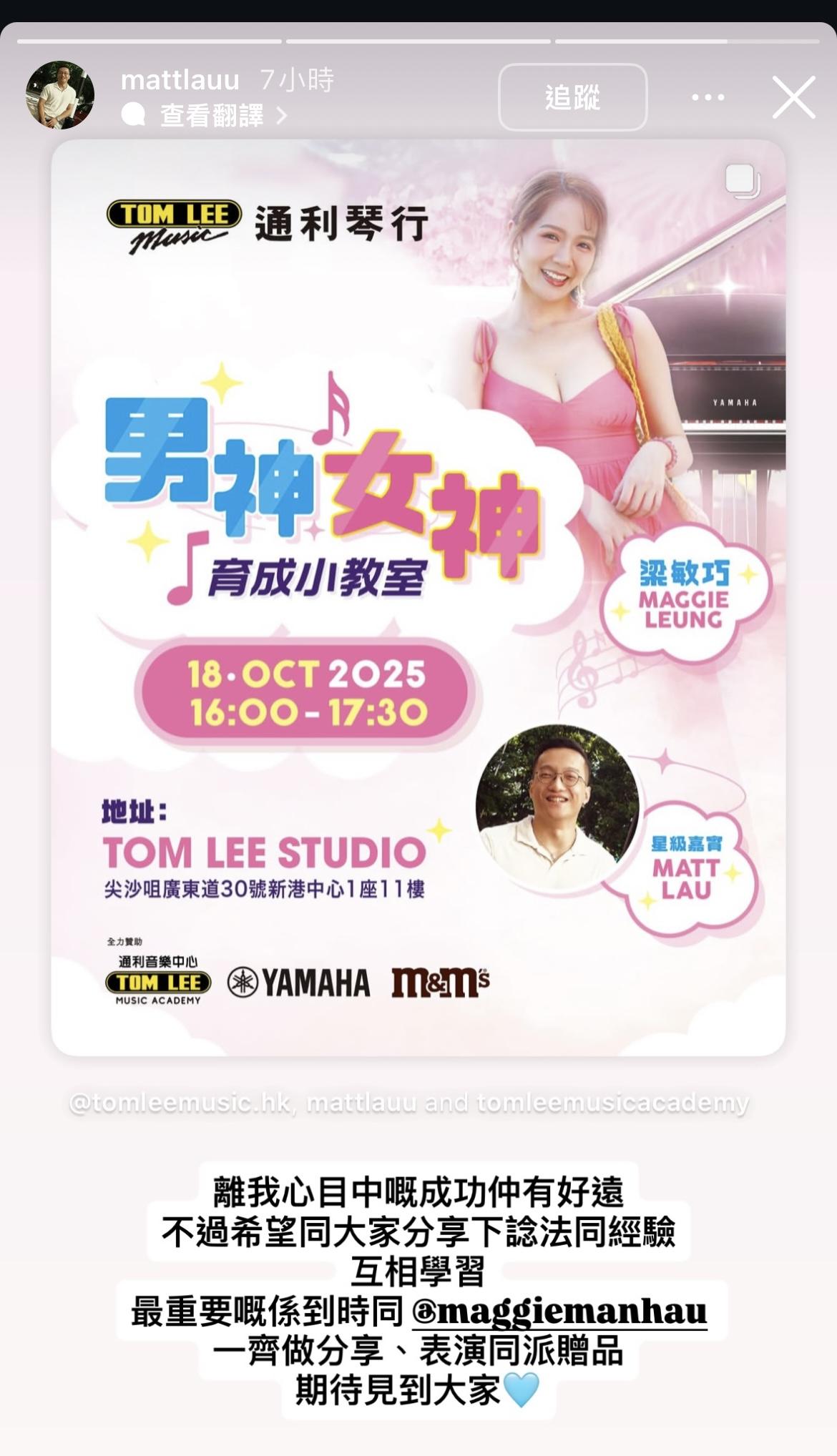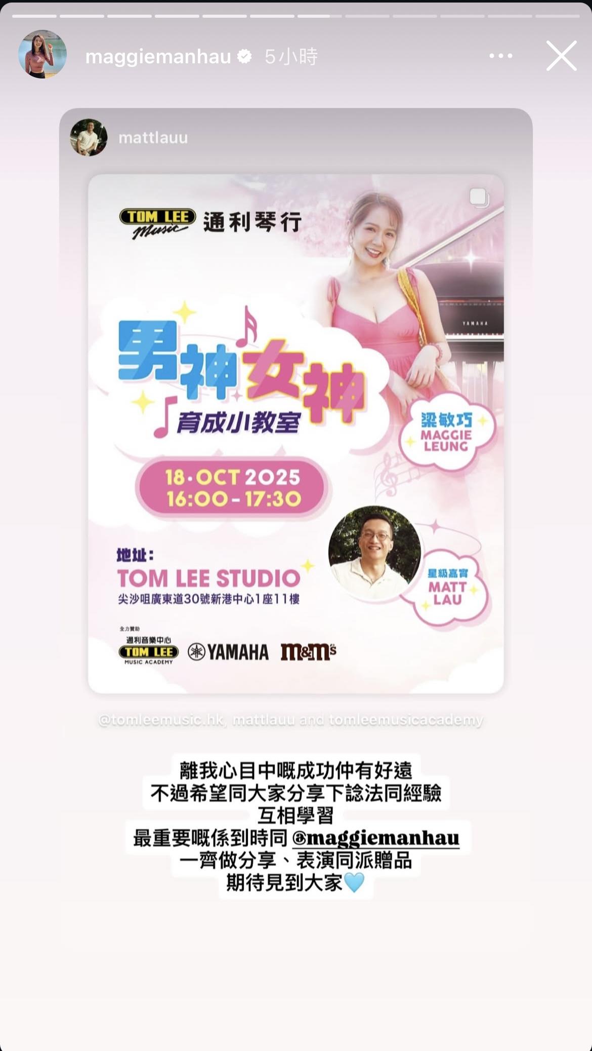 返回 娛樂 2025-10-01 21:30:00 梁敏巧帶挈朱古力銷量上升 與Matt將四手聯彈 分享: 「M&M」梁敏巧、劉啟進在節目後,繼續深入了解。 梁敏巧(Maggie)與劉啟俊(Matt)獲網民封「M&M」,令不少人每經過有售賣「M&M」朱古力的地方均購入並打卡tag上二人的帳號,令他們成為最強勁的代言人。 Maggie曾預告與Matt於十月中有合體的活動,日前有琴行宣布本月18日邀請他們,内容除了有網民最期待的四手聯彈之外,更有Maggie、Matt分別教大家儀態等等,當然也不少得大派「M&M」朱古力。有網民笑言他們是「夫妻檔」搵銀。 ADVERTISEMENT 立即更新/下載AM730手機APP 體驗升級功能