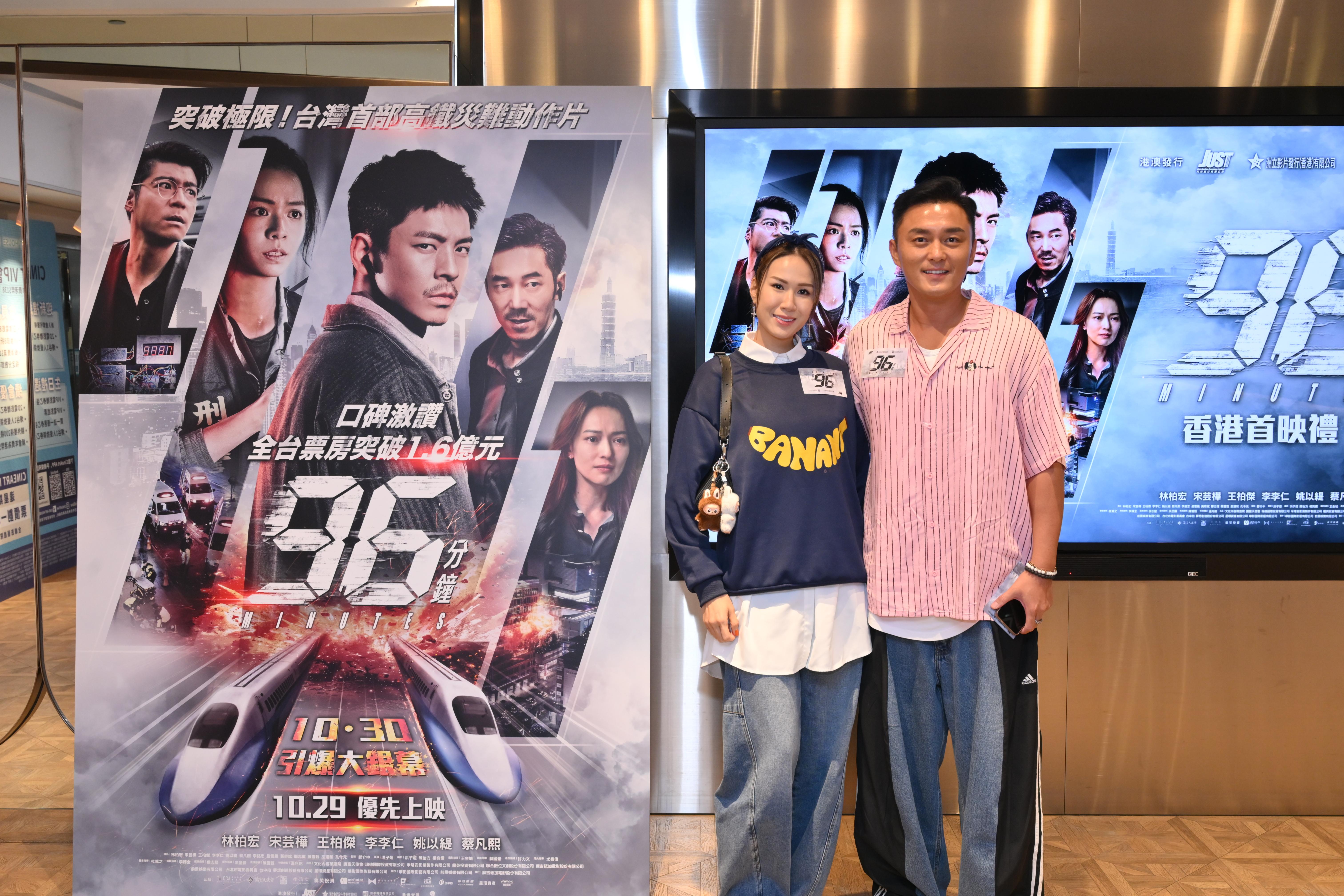 楊明與莊思明拍拖出席《96分鐘》香港首映禮。