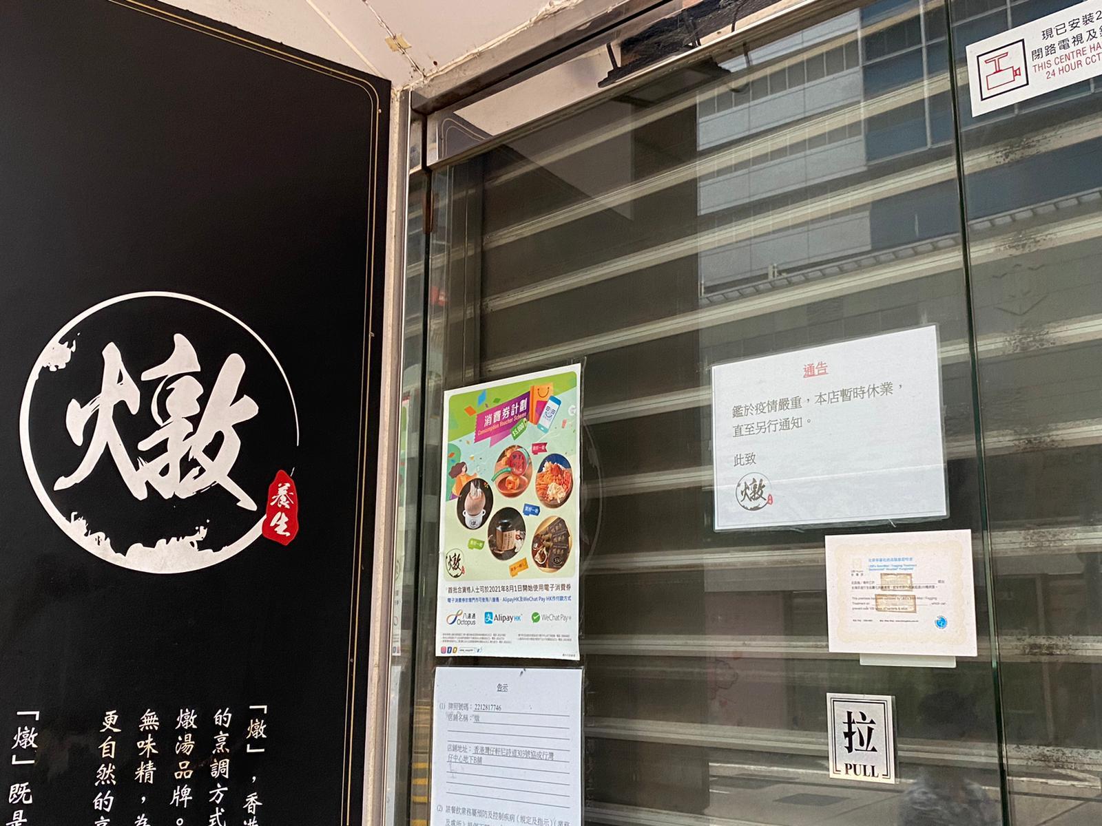 楊明雖然官非纏身,但仍獲無綫力撐主演港版《華燈初上》。不過他與友人合資經營的燉湯店生意,持續受疫情影響,令生意大跌,多間分店先後結業。昨日(22日)網上流傳一張截自飲食App的圖片,顯示9間分店已全線結業。灣仔分店昨日有數名大漢把餐廳內的椅子搬出。本報今日所見,灣仔店仍未營業,門外貼著通告稱「鑑於疫情嚴重,本店暫時休業,直至另行通知。」至於餐廳的社交平台專頁,自2月開始已沒再更新,所有分店的電話已停用,而訂餐熱線雖能接通,但無人接聽轉駁留言信箱。