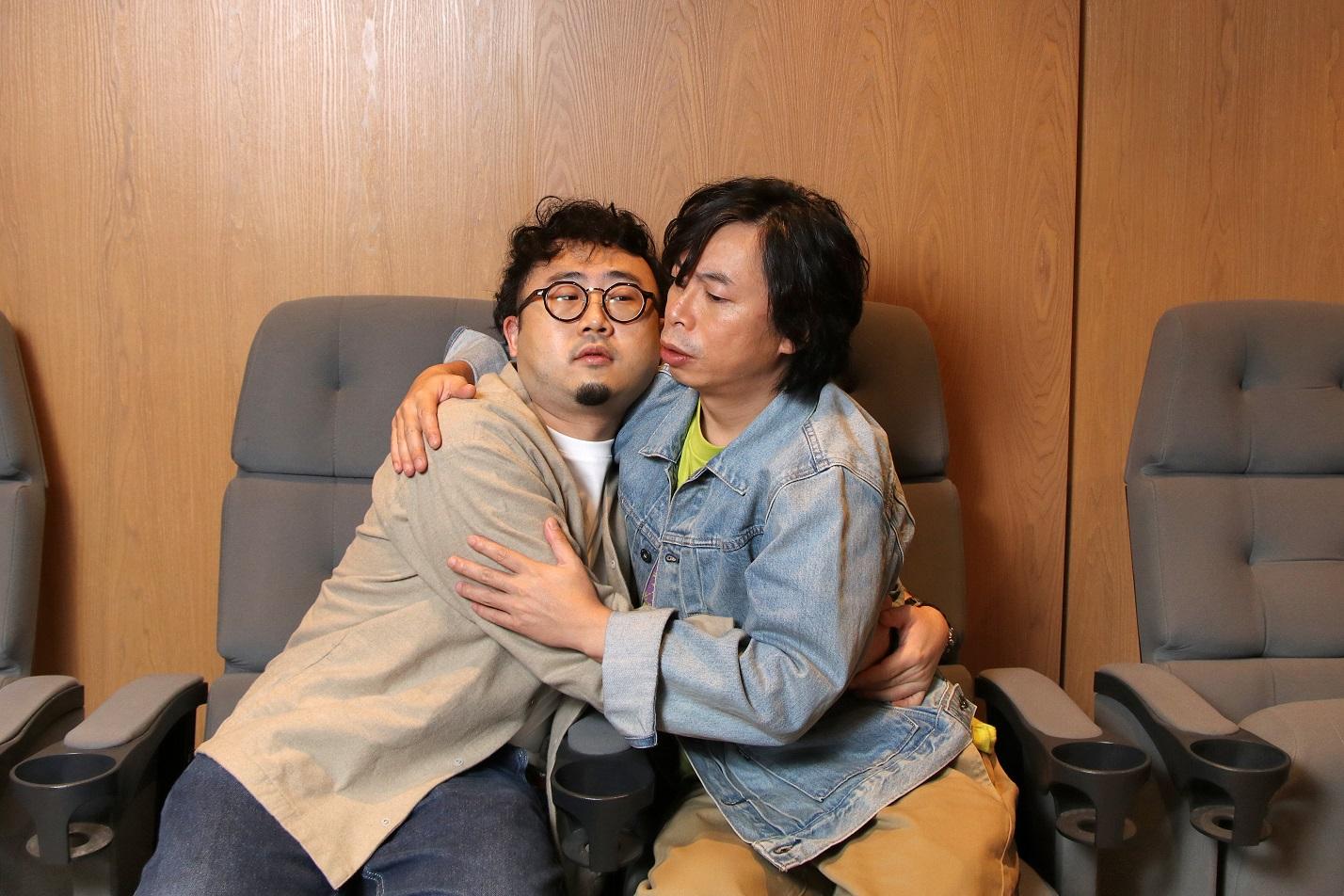 麥沛東和楊偉倫在電影《正義迴廊》重演轟動一時的大角咀弒親肢解案。(林俊源攝)
