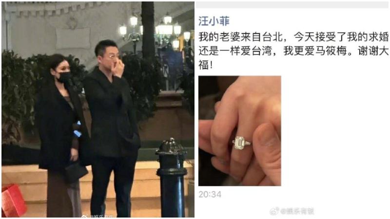 大S徐熙媛的前夫汪小菲早前大鬧台北,回北京後向新女友Mandy(馬筱梅)求婚成功,他在朋友圈曬出女友戴上鑽戒的照片,並寫下:「我的老婆來自台北,今天接受了我的求婚」。