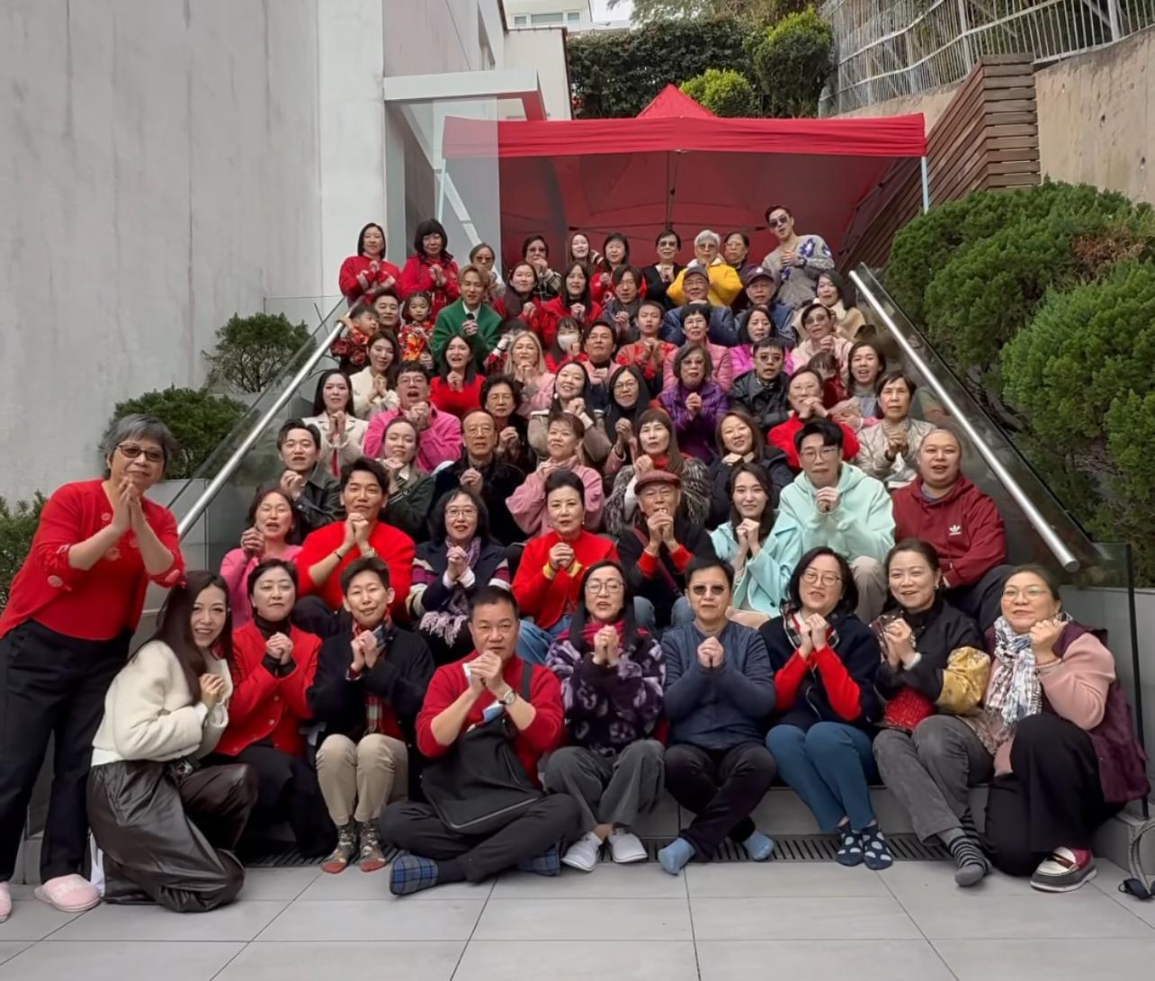 汪明荃(汪阿姐)與羅家英每逢農曆新年必會招待好友拜年,阿姐昨日(30)大年初二在大宅招待逾半百友好團拜,出席藝人包括《中年好聲音》的周吉佩、譚輝智、陸浩明和女友陳詩欣、馮盈盈、關楓馨、黃建東等,場面虛冚熱鬧。阿姐社交平台發布拜年短片,眾人坐在花園的樓梯上一同拍片講祝賀說話,同時她亦分享多張合照,寫道,「大年初二大食會,恭祝大家新年行大運身體健康萬事如意!」