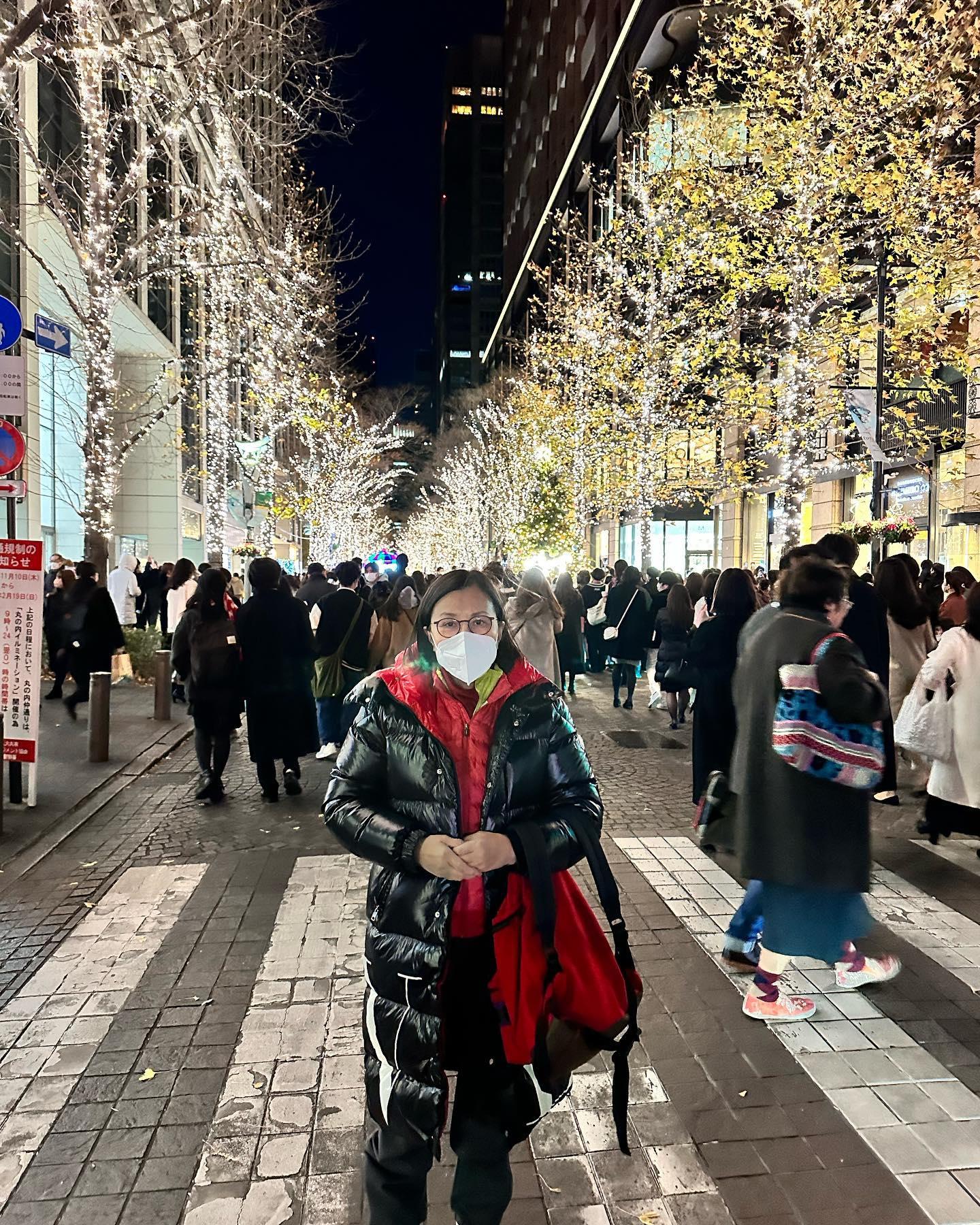 早前阿姐透露,將與羅家英及數位好友一齊遊東京,而阿姐表示除了會品嘗美食外,還會浸溫泉及欣賞當地風景,輕鬆遊日。聖誕節當日,阿姐在社交平台分享在當地玩樂的照片,與友人到訪一間高級牛肉餐廳用膳,又暢遊輕井沢和草津等地。不過,有不少照片見到阿姐不時合埋眼,還有鬆郁濛,估計為她操刀拍攝的是家英哥。