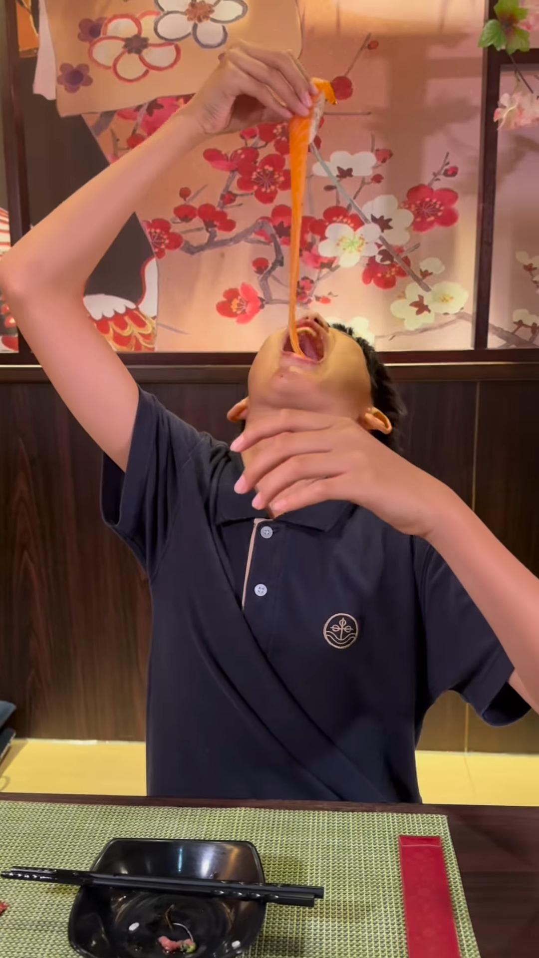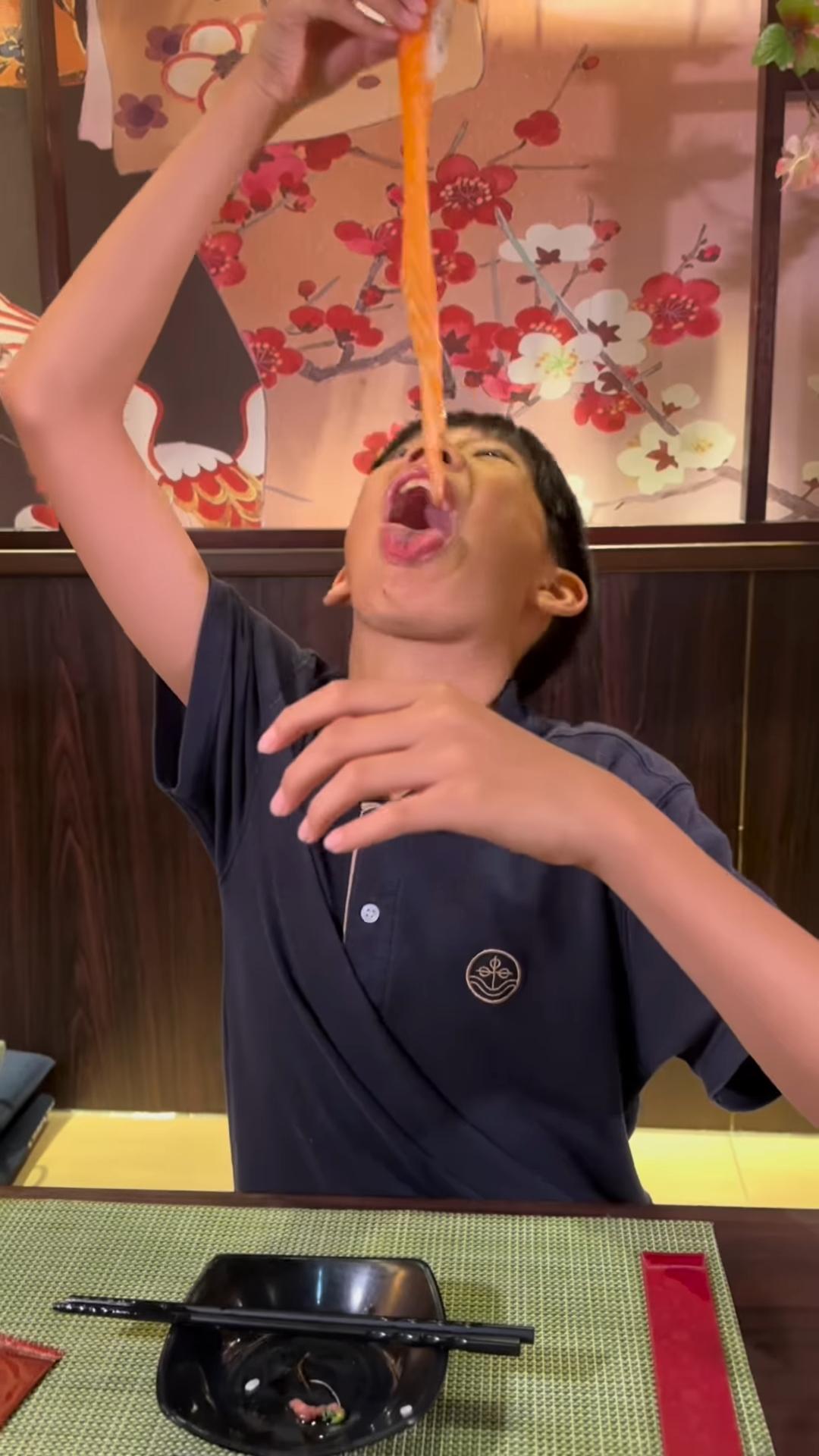 片段又見到大仔不停食,將超長的三文魚放入口,整個動作似足吞劍一樣,而大仔更因為食得太快,被天明著他吃慢些。大仔更問細佬︰「你唔係肚痛咩!」食得津津有味的細佬就表示不再肚痛,非常搞笑!