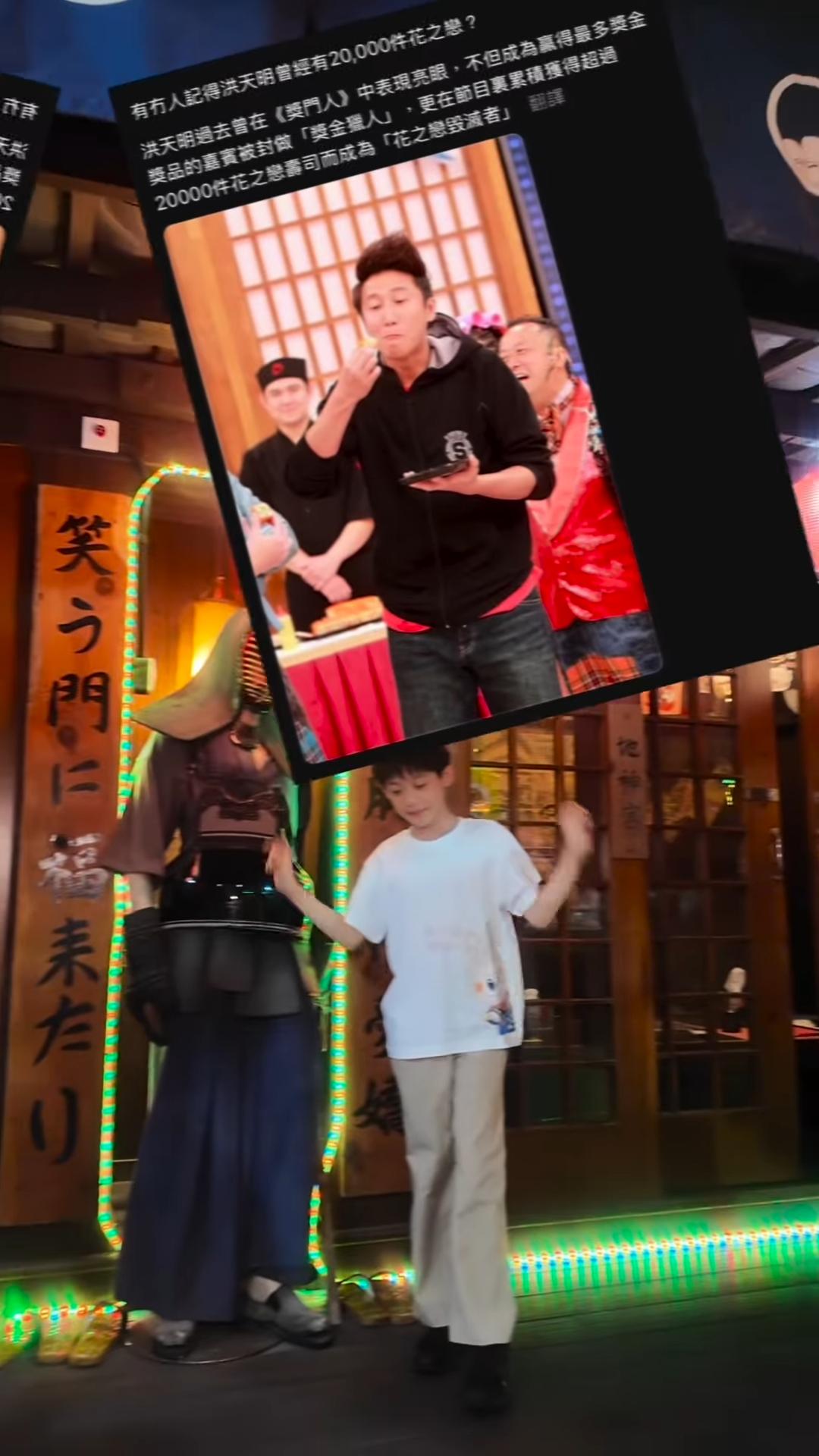 日本餐廳加太賀傳出易手消息,再次令人想起洪天明在《獎門人》贏到的2萬件壽司。洪天明在社交平台上載一家四口到訪加太賀的影片,並寫道︰「當年獎門人的禮物20,000件,不是我一個人。」而影片開首就有他一句獨白︰「好多人諗起花之戀,就諗起洪天明。究竟花之戀係邊度嚟,帶大家重遊舊地,去花之戀個誕生地」。