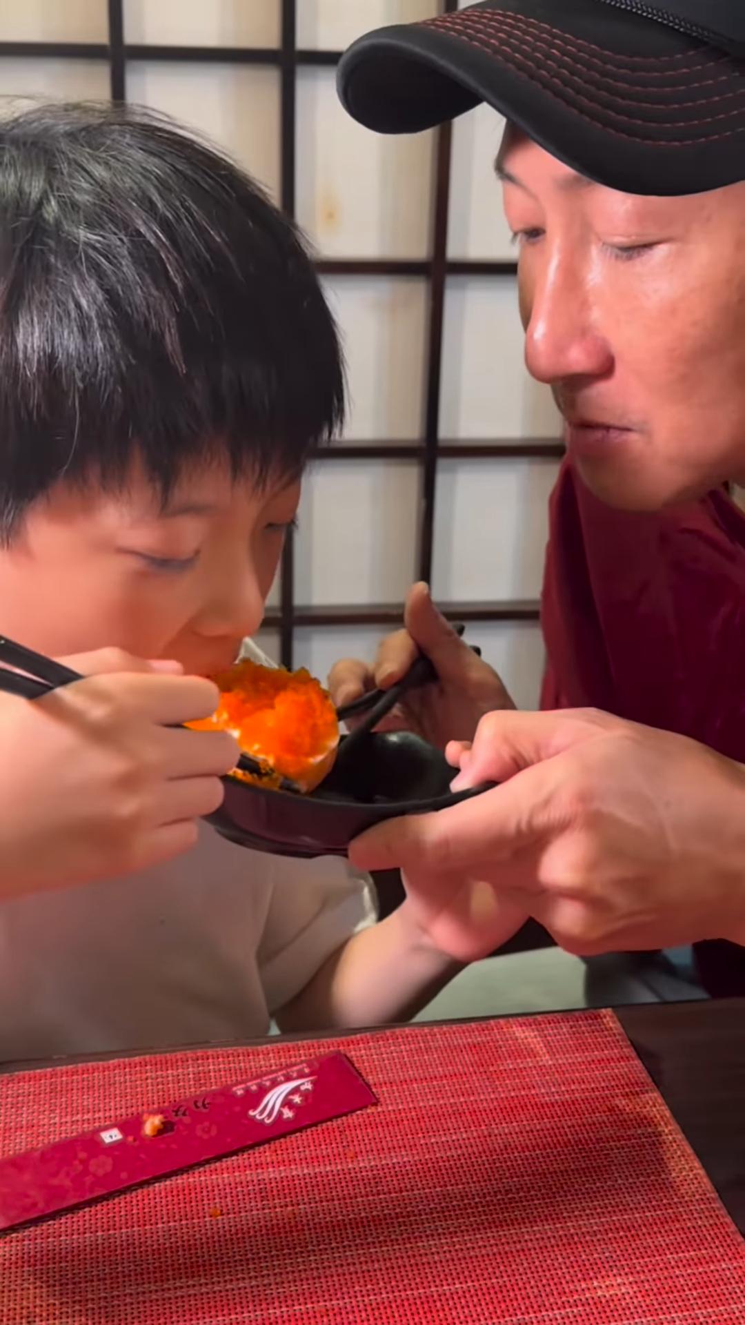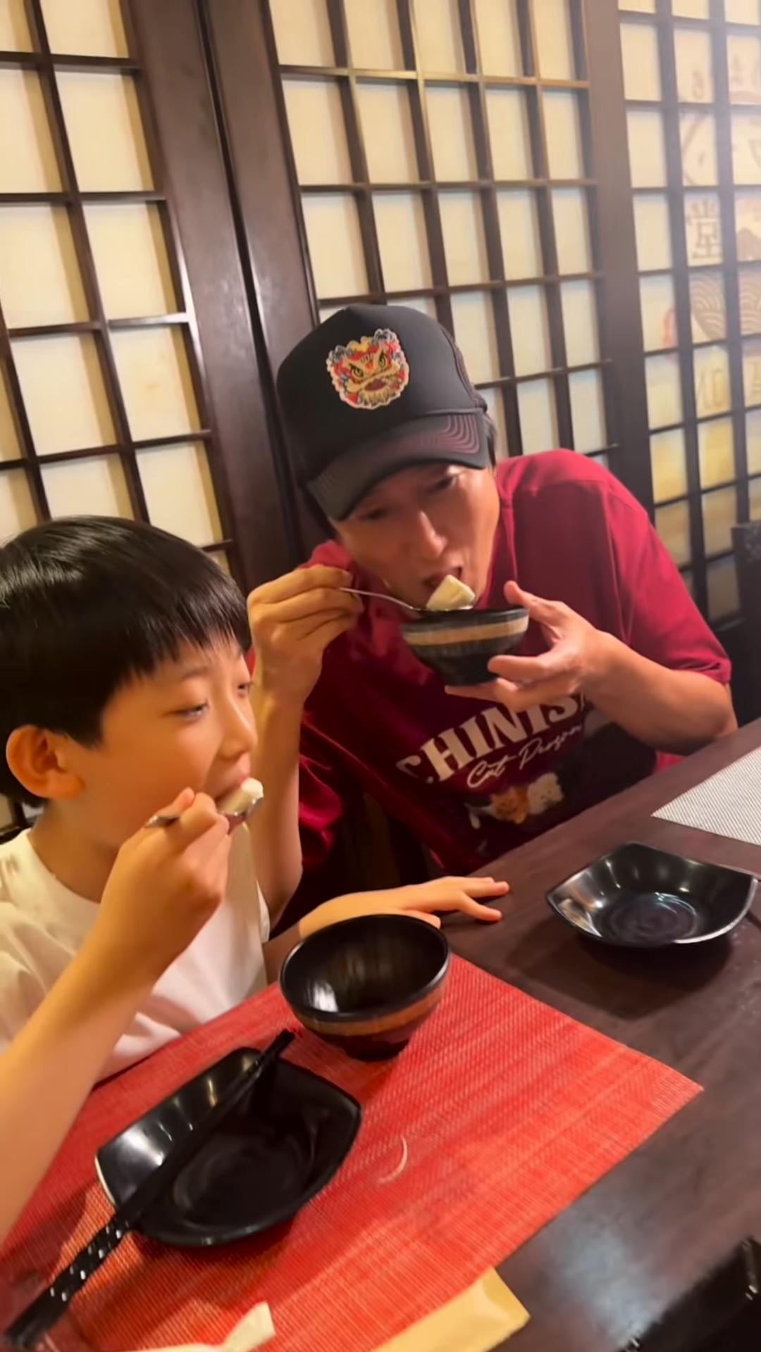 洪天明全家到訪加太賀,兩個仔仔不停食。