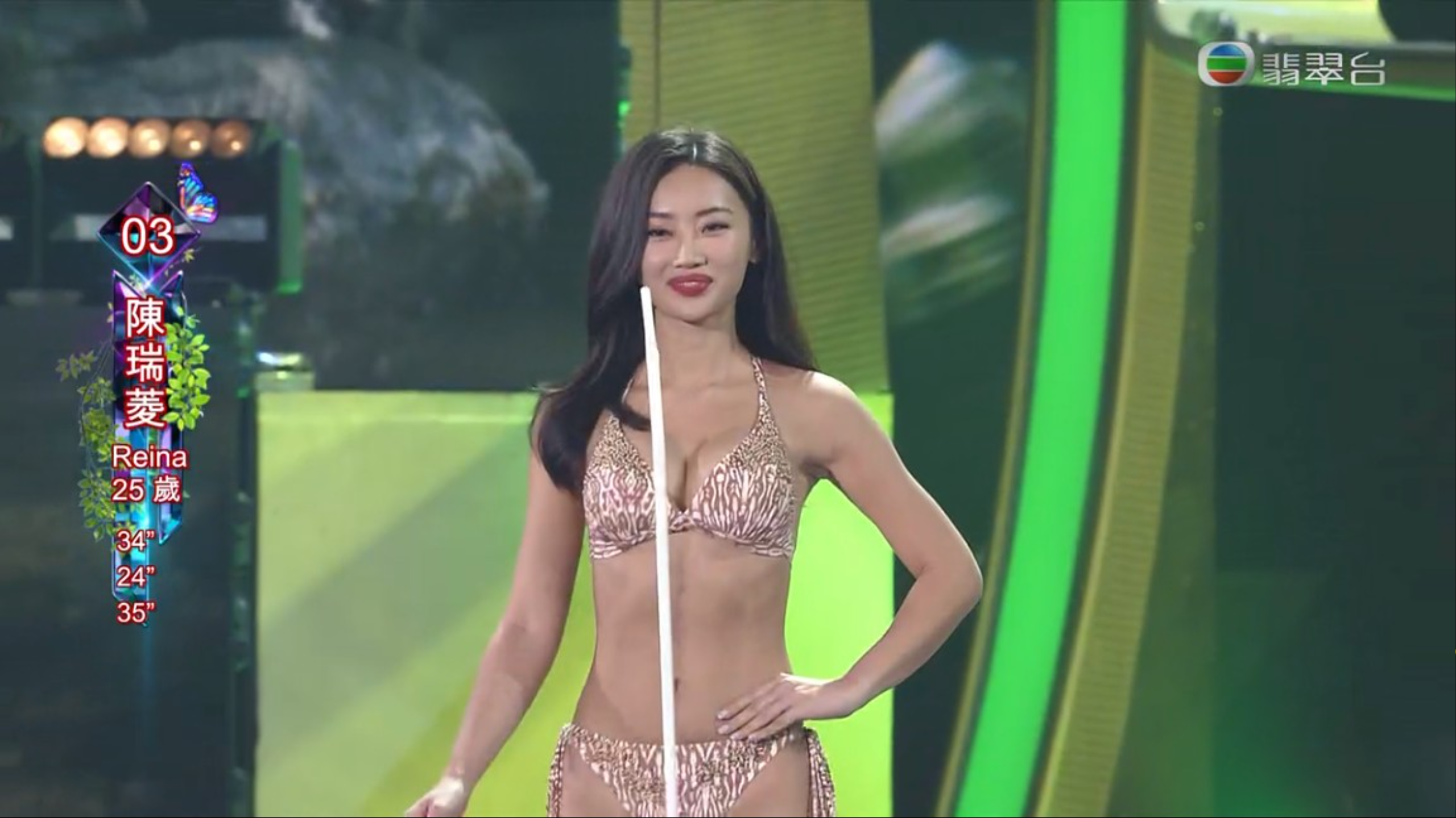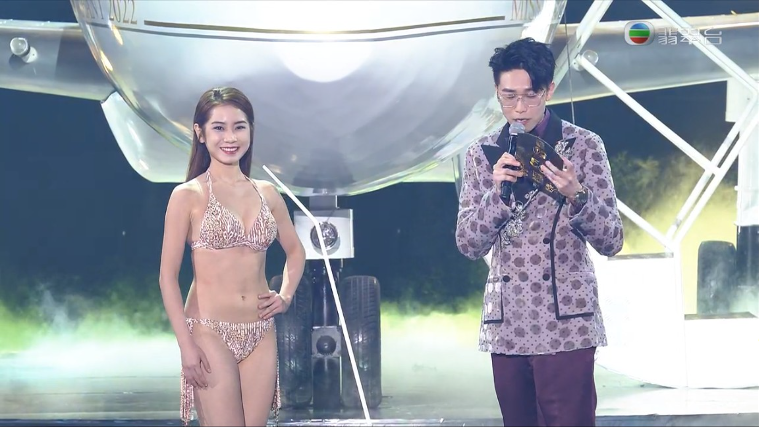 曾志偉謂泳衣環節是港姐的靈魂,叻哥先問「有幾特別?係咪叫佳麗著羽絨?」陳欣健說:「唔係嘛,俾人彈兩句就要搵啲羽絨遮住晒?」曾志偉答:「我都驚,驚啲人走晒,所以今年係唔同以前,年代再變,泳裝不變。」旦哥續抽水:「人哋話你咁樣望住啲佳麗。」曾志偉繼續自抽:「咁我高度只能夠望到咁,我係你咁高就由高望落去啦!」旦哥隨即表示支持穿羽絨,但更支持她們除掉羽絨才出來。