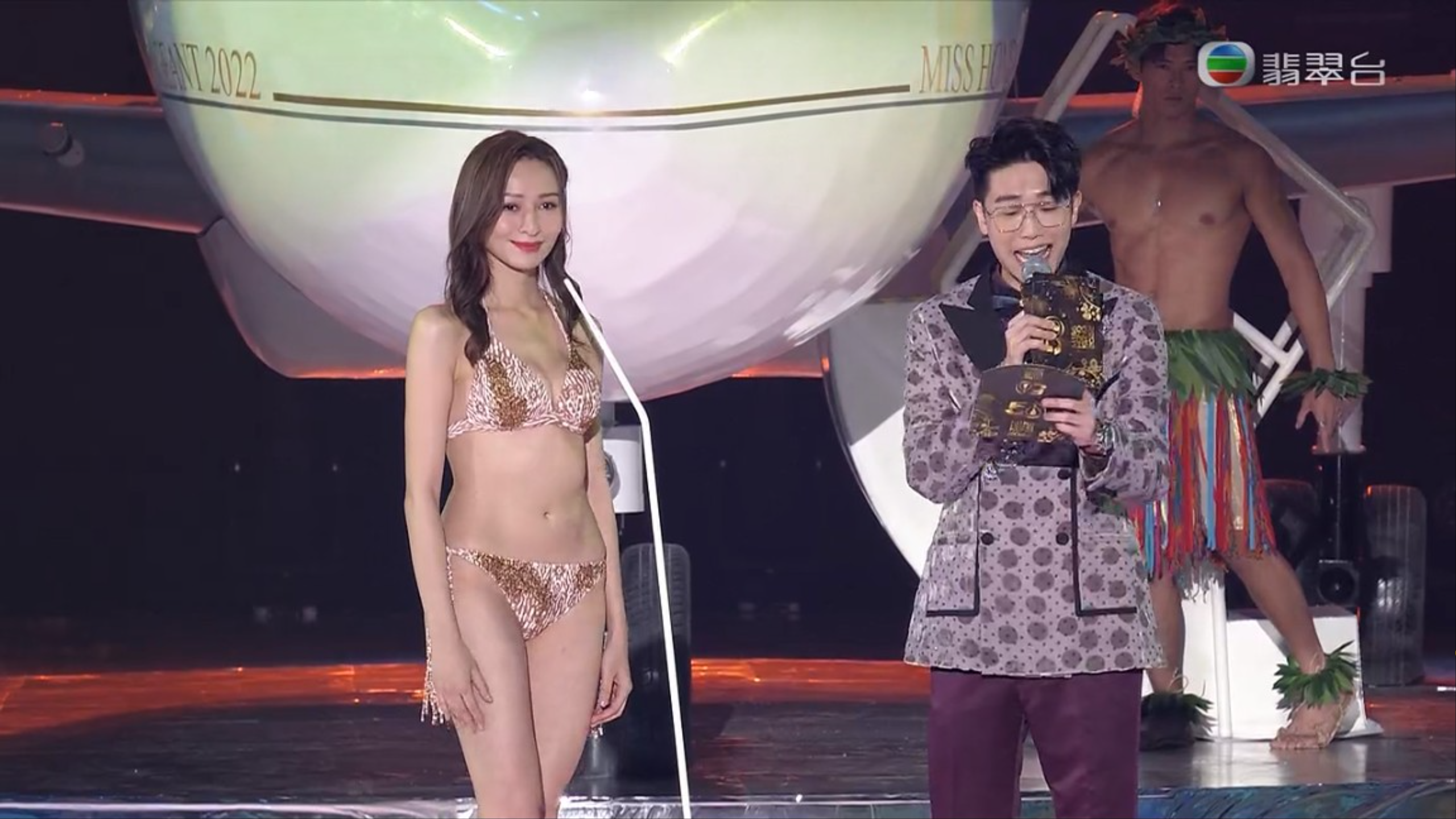 2022香港小姐競選》宣布10位晉級佳麗之後,便進入泳衣問答環節。在開始之前,曾志偉、陳百祥、陳欣健及鄭丹瑞輪流互窒,內容明顯還擊監警會委員余黎青萍批評港姐泳衣環節的言論。