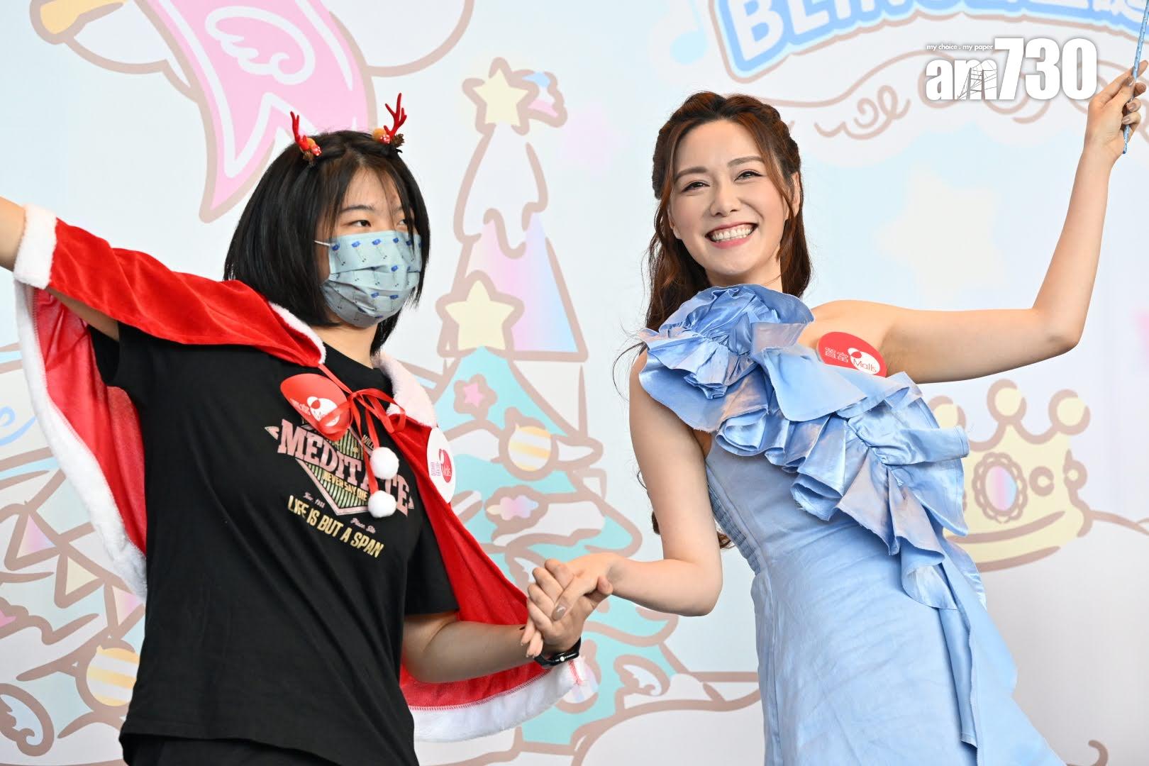湯洛雯與鍾柔美一齊主持聖誕裝置開幕禮。
