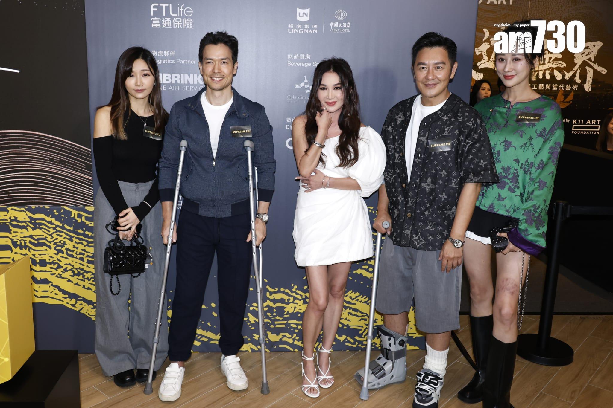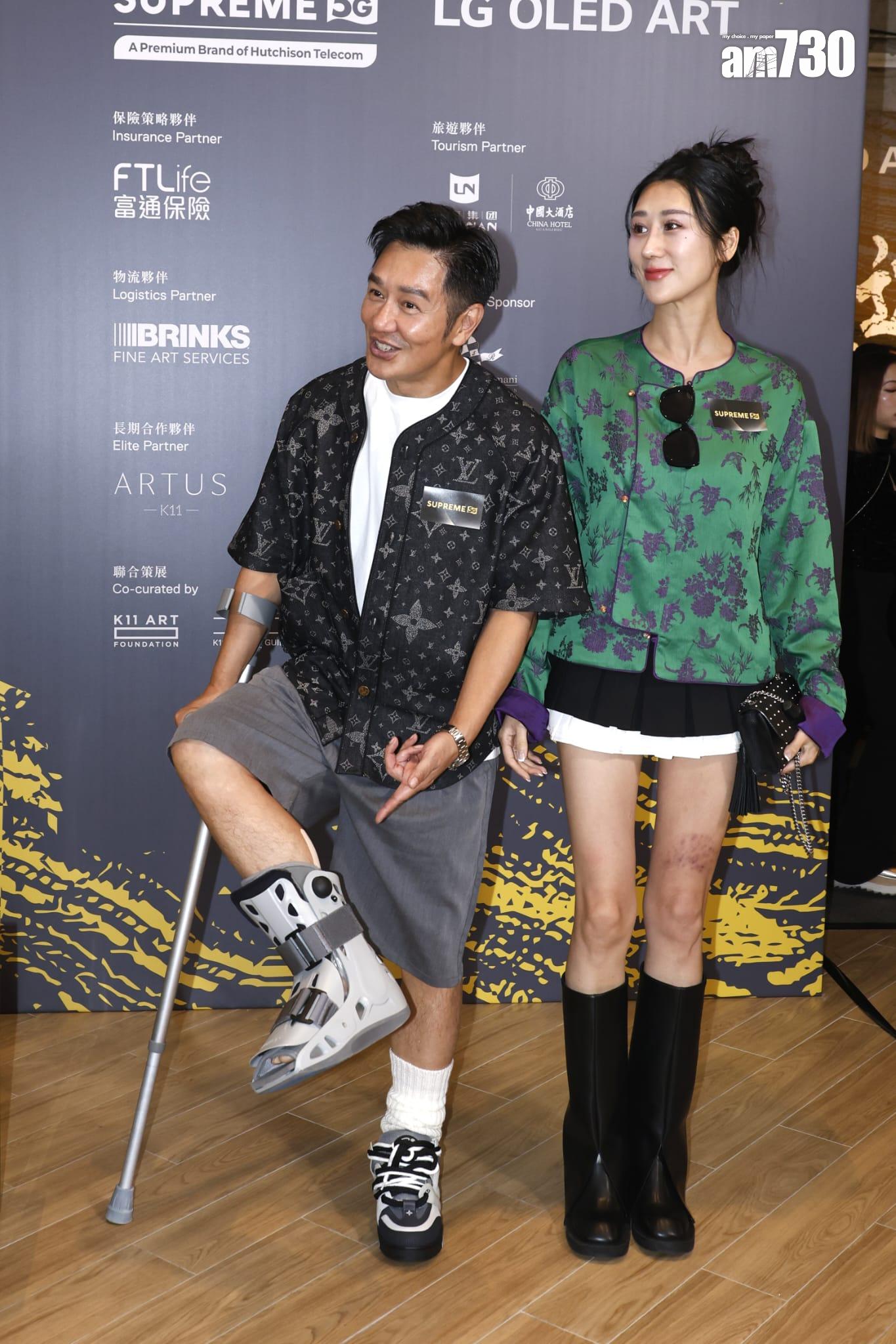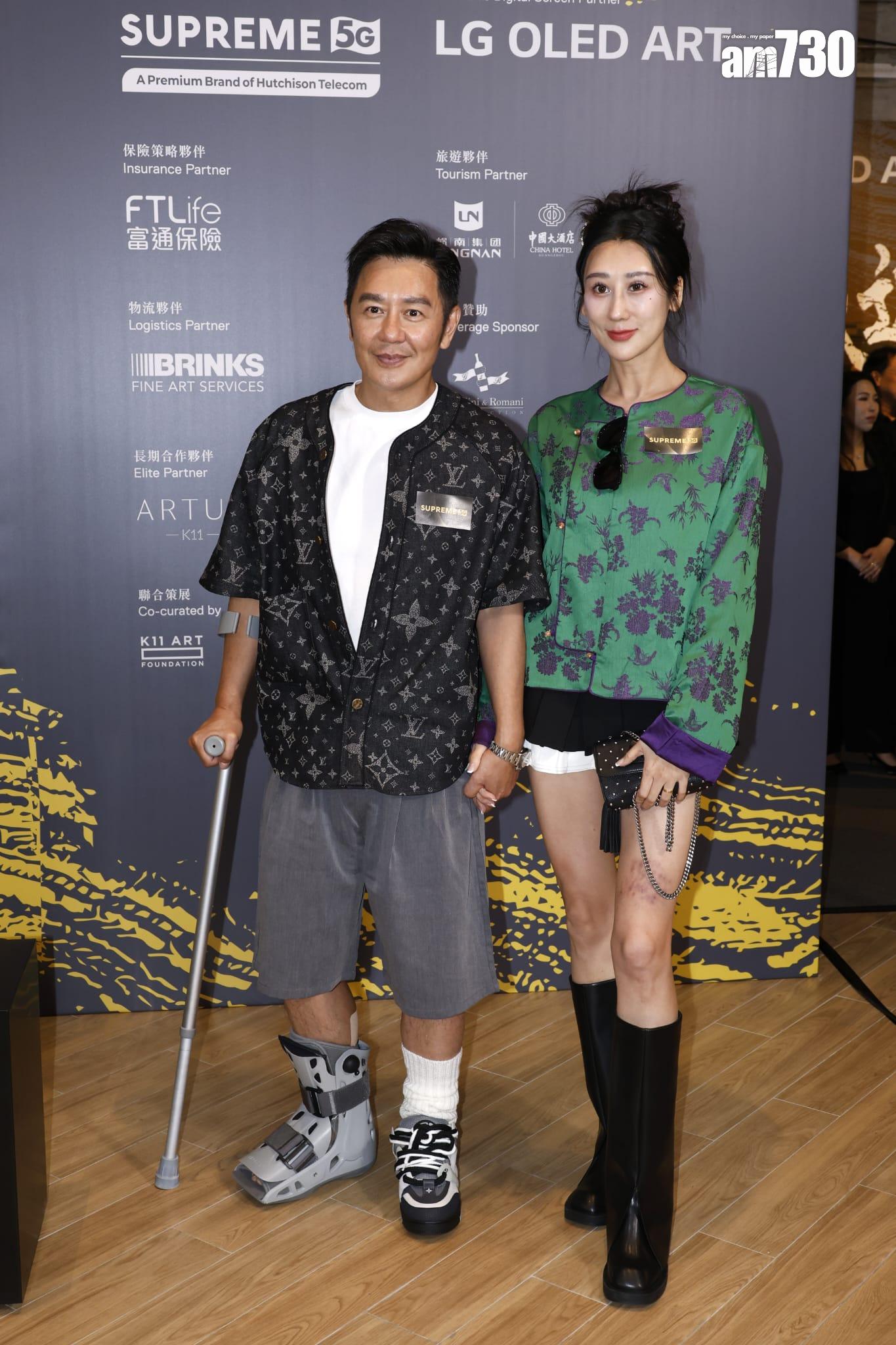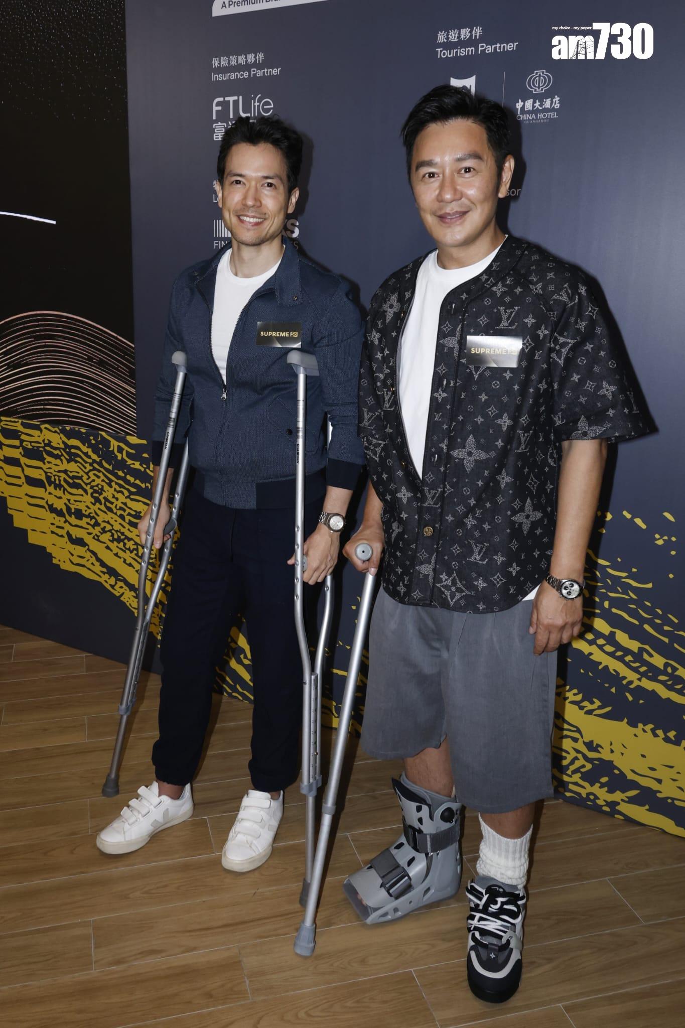 不過,陳浩民就撐住拐杖到場,右腳更要穿上固定腳套,而早前他的太太蔣麗莎外遊時,大髀因為被珊瑚刺傷留下疤痕,認真禍不單行。同場的麥大力亦同樣撐住拐杖到場,跟陳浩民同病相憐。