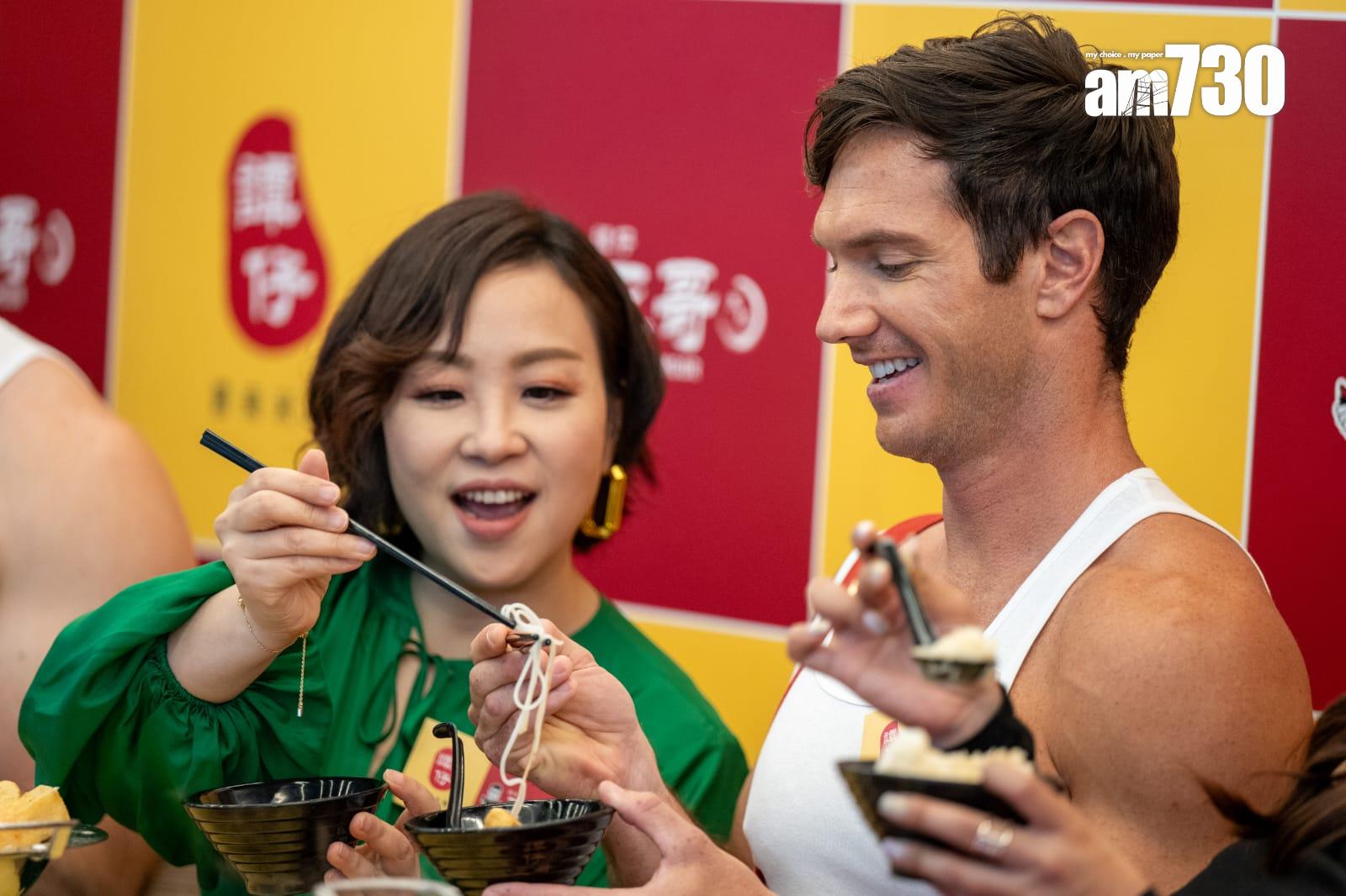 三位Hot爆的2024澳洲消防員月曆封面猛男Brenden Purvis、Michael Galanos及Ricky Smith,日抵港正式展開三天行程,今日與頭楊詩敏及練美娟一同出席譚仔雲南米線及譚仔三哥米線全新「熱鍋」系列發布會。