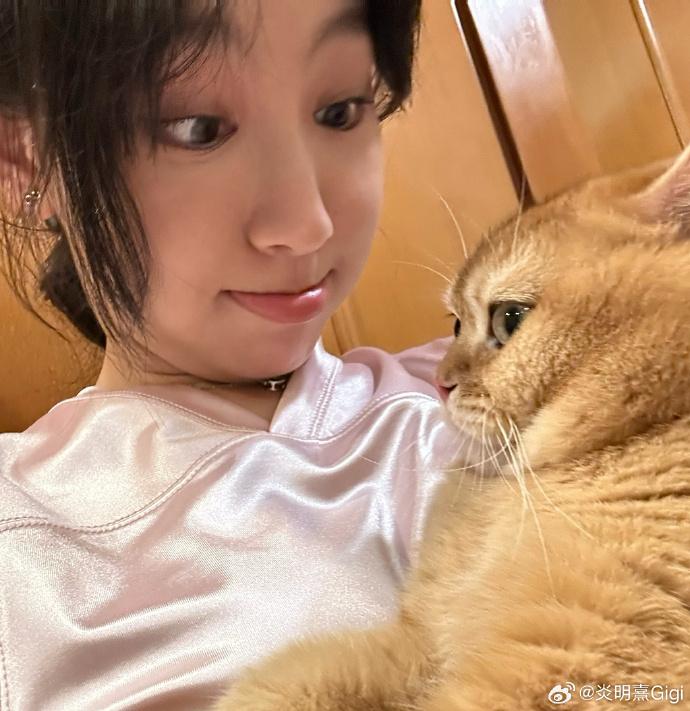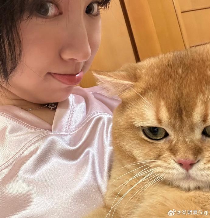 而網上流出的另一張Gigi手抱炎三料的照片,她同樣做出嘟咀睜眼表情,一手抱著那隻毛茸茸的炎三料,一手拿電話自拍。Gigi活潑開朗性格,在這些吸貓照片中表露無遺,相中留著較短髮的她,顯得有點高額,明顯留髮陰較為襯她,現在的長髮造型,是十分適合她的。