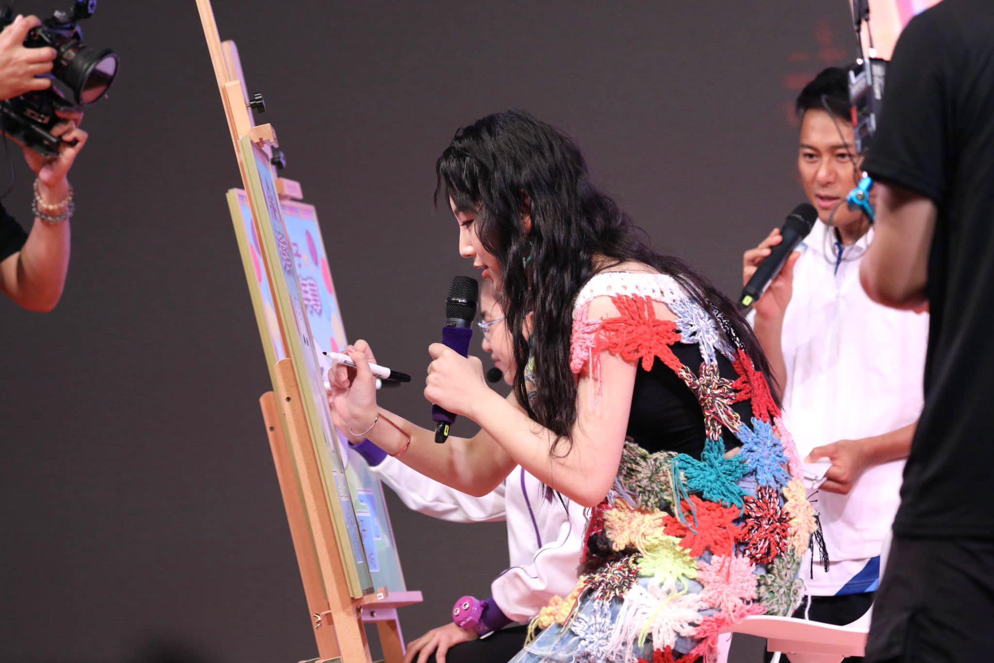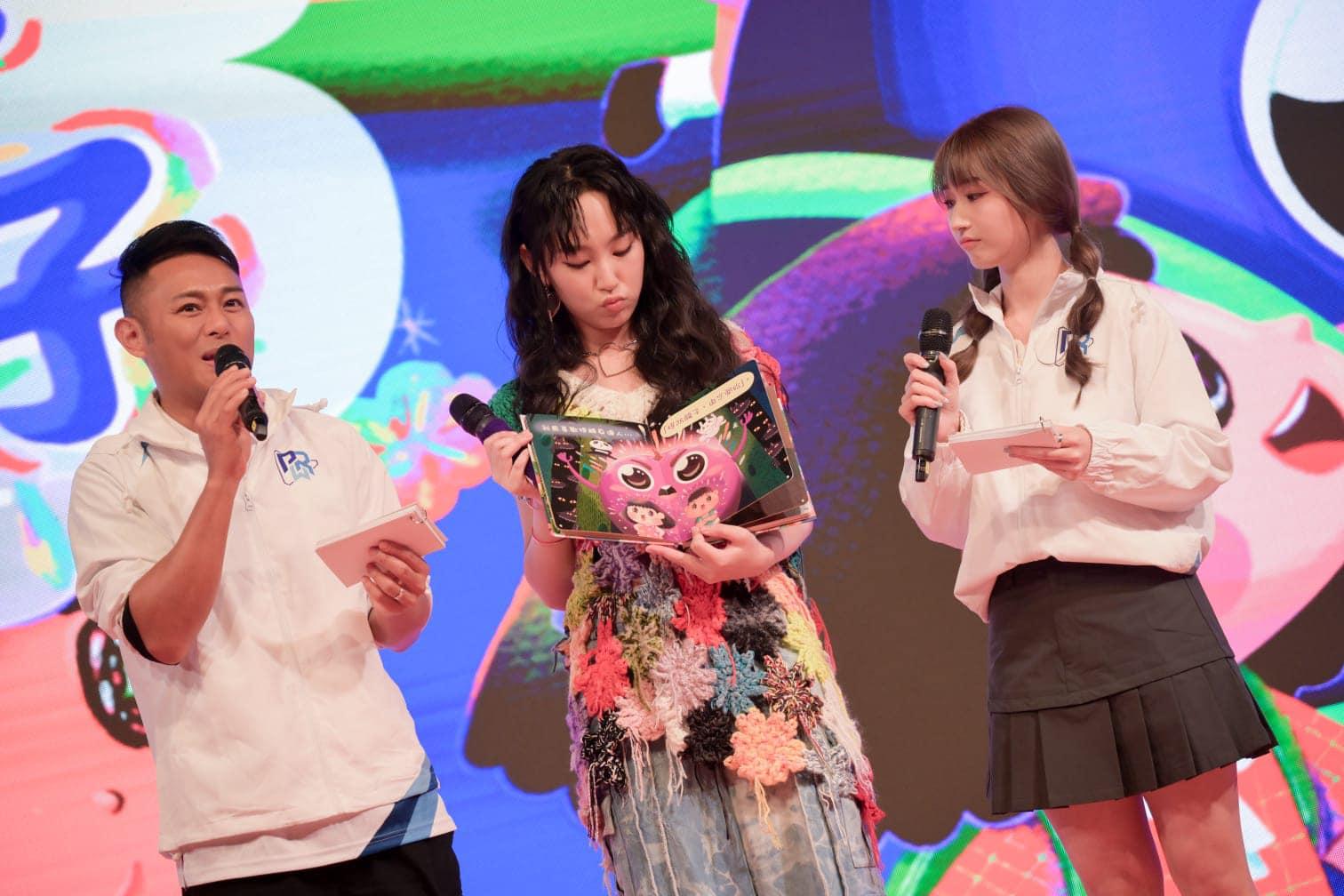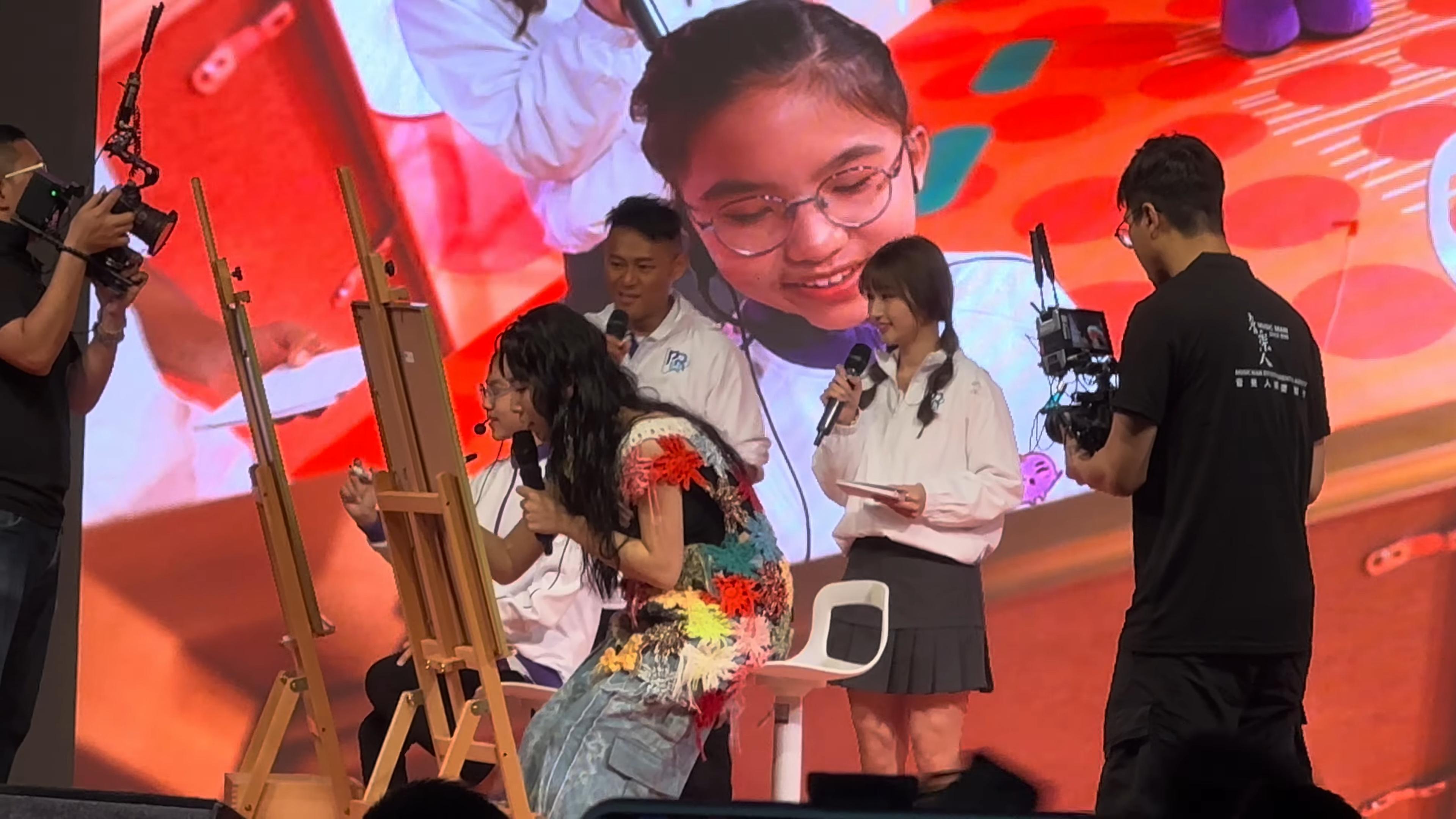 炎明熹昨日到西九文化區出席活動,除了擔任表演嘉賓外,更跟現場觀眾玩遊戲,同時她亦即席揮毫畫吉祥物及介紹繪本,提醒大家不要受騙。