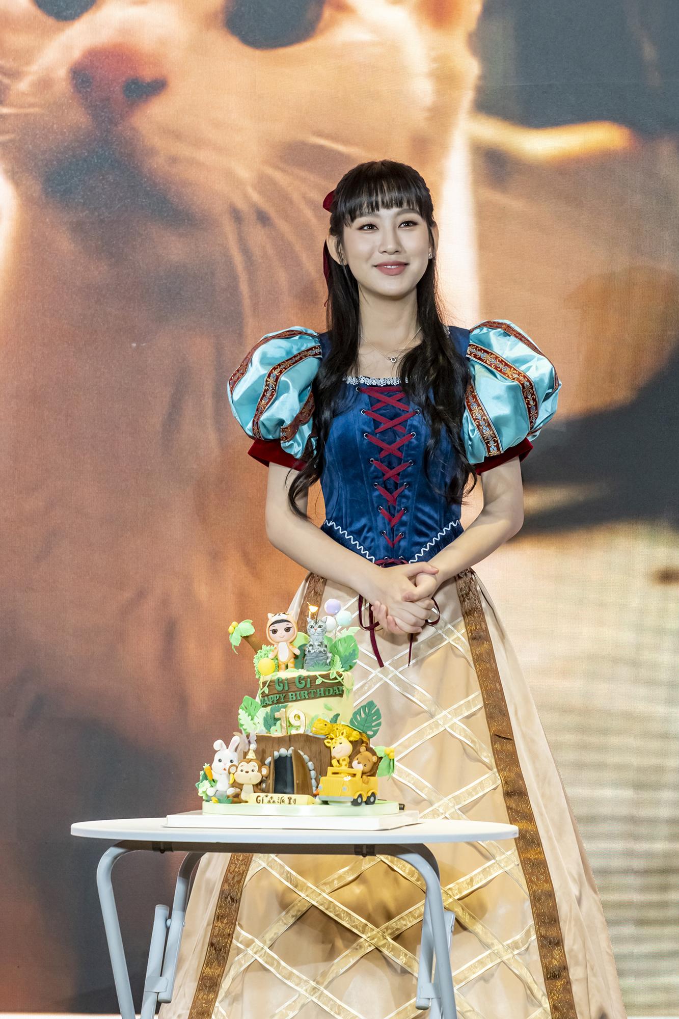 早前她亦跟四百多位粉絲提早慶祝,而當日的派對以動物為主題,一眾粉絲悉心打扮之餘還安排了連串節目跟偶像賀壽。Gigi則以公主造型亮相,還與粉絲一起玩遊戲,眾人打成一片,氣氛非常熱鬧。由於Gigi開騷在即,為免出現健康問題,眾人在活動上都戴上口罩。