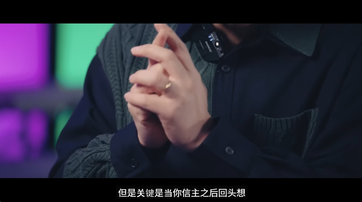他續指在現今社會大部份都做不到聖潔這件事,「可能他們之前未信主,還未信主的時候,我不能要求你要跟著聖經,你不要抽煙,你不要婚前性行為,那個時候都還沒信。信主之前,有沒有犯過這個,我們真的每個人都有不同經歷,但關鍵是當你信主之後回頭想,這件事情到底是一定程度的痛悔,還是你覺得哇!」