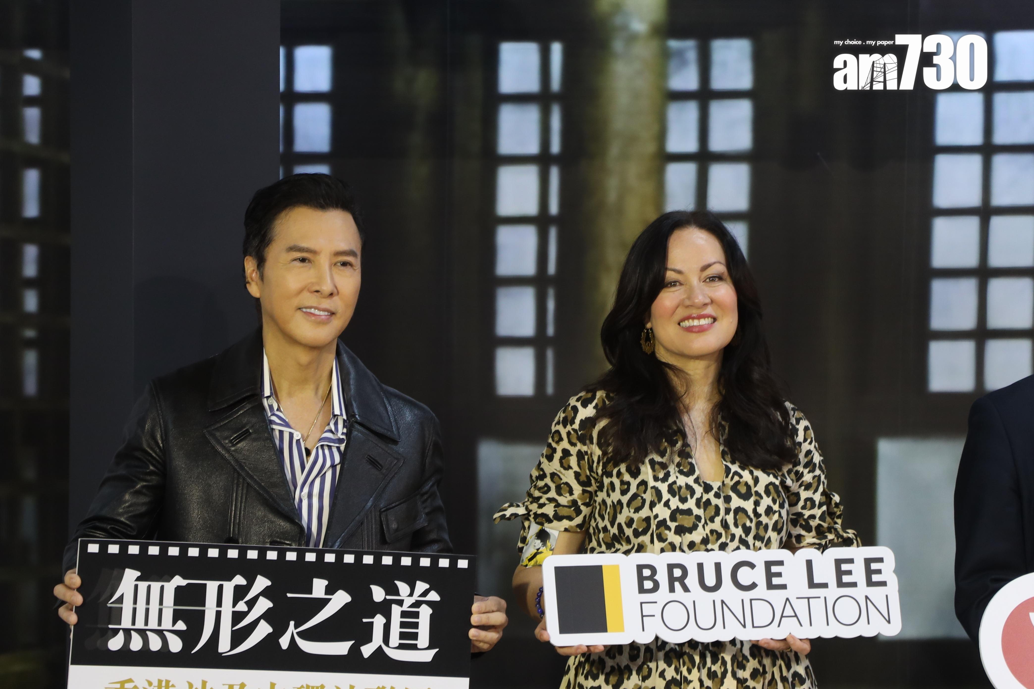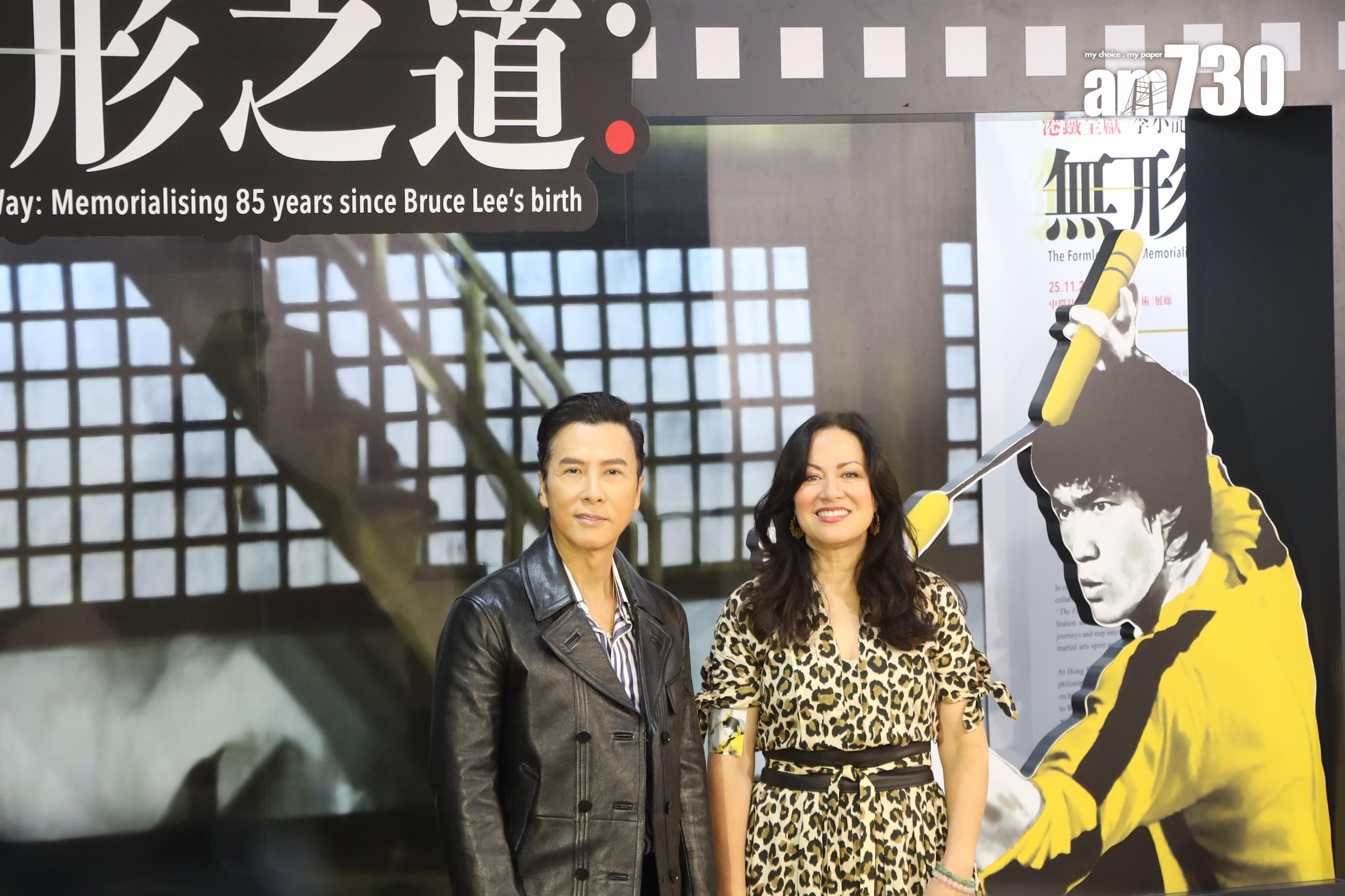 甄子丹和李小龍女兒李香凝出席港鐵舉行的《李小龍誕生85周年紀念展:無形之道》揭幕禮。