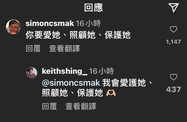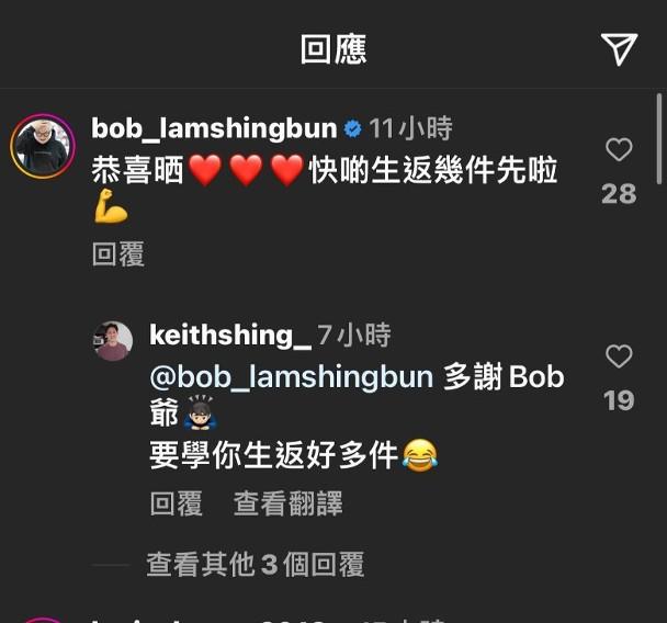 由於麥明詩開到聲想生B,即代表二人已有共識,林盛斌(Bob)留言恭賀二人說︰「恭喜晒,快啲生返幾件先啦!」盛勁回覆:「多謝Bob爺,要學你生番好多件!」麥明詩老竇即tag阿Bob留言:「過幾招畀佢哋啦!」可見兩老非常恨抱孫!