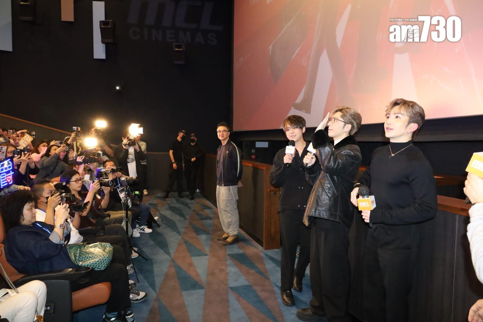 MIRROR三子與導演袁劍偉為賀歲片《盜月者》謝票。