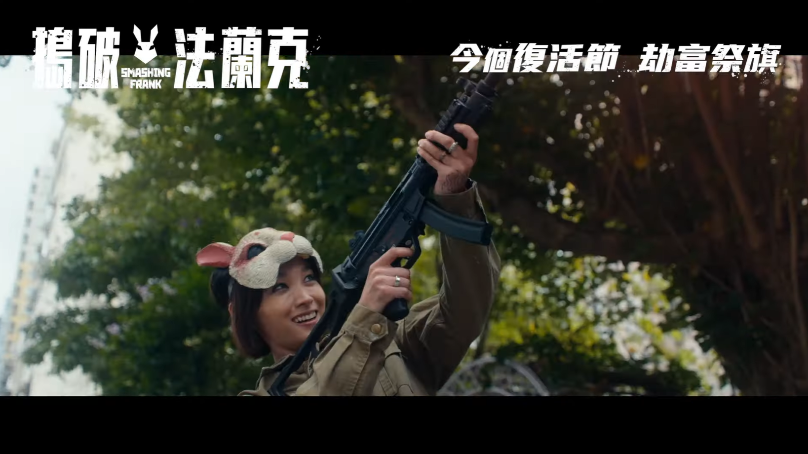 《搗破法蘭克》首條發布宣傳片,揭示正接受社會服務令的紀月(談善言飾) ,與社工會面時直言:「我最近打劫!」紀月頭戴兔仔面具,穿着勞工服,在劫後的押款車上噴上塗鴉標記,持機槍亂掃,撒錢落街,紀月又說:「法蘭克嘅劫案要好似行為藝術,程序要做足,我哋要揀啲啱數嘅老屎忽打劫。打劫畀啲咩觀眾睇,我哋自己話事。」陶俊(岑珈其飾)問:「你打劫喎?咁你仲放上網?」紀月回應:「係呀!你記得幫我哋share喎!」而《搗破法蘭克》的首張海報中的角色,正是持槍戴上兔仔面具的談善言,並定於4月在港上映。