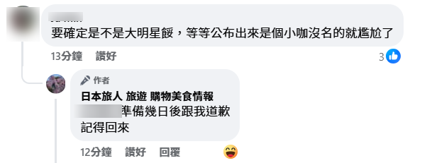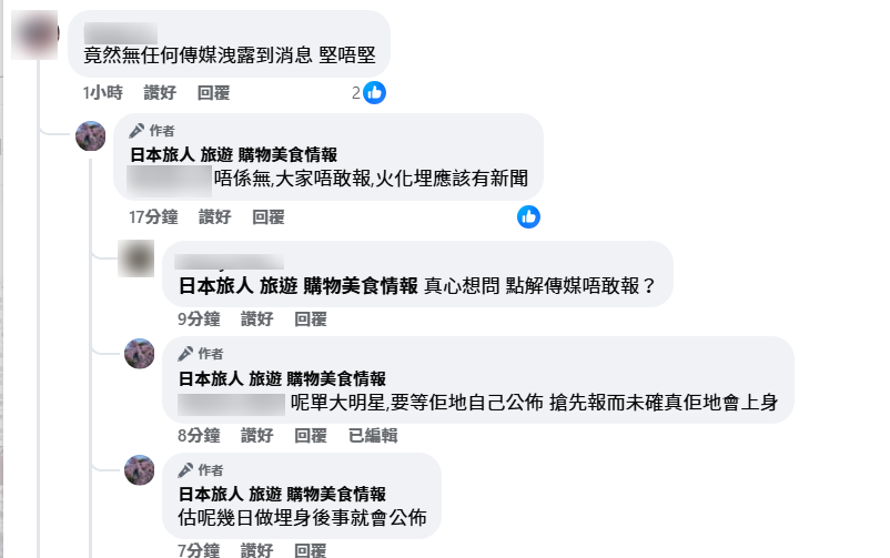 然而,台灣媒體未有報道任何藝人死訊,而該專頁被問到消息來源時,僅謂「火化埋應該有新聞」、「估呢幾日做埋身後事就會公佈」。其後有網民指專頁造謠生事,專頁的小編非常霸氣留言說︰「準備好道歉啦台灣人」、「你準備幾日後跟我道歉,記得回來!」