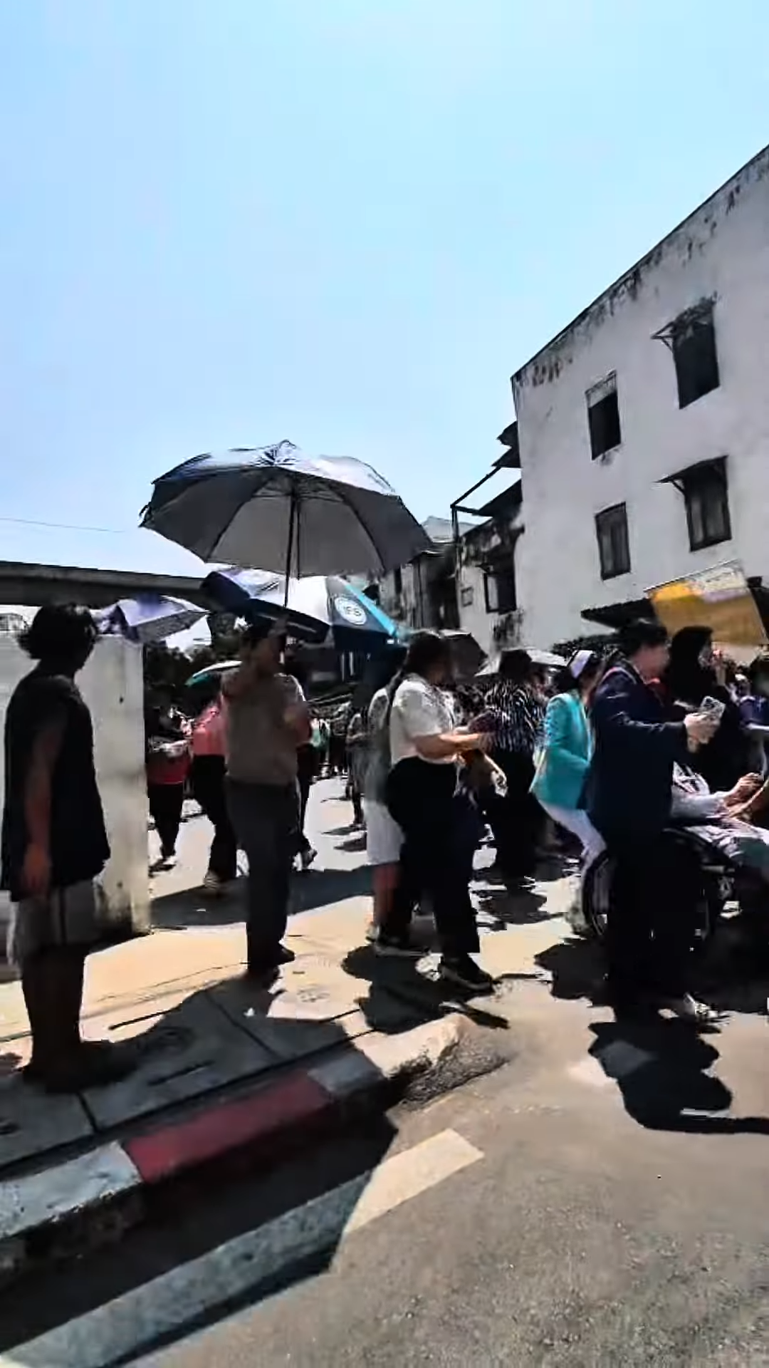 他亦分享表姐屋企情況,窗簾不停搖晃。他指泰國極少發生地震,突然晃動時「大家都嚇一驚」。他亦走到比較多遊客到訪的水門街,市面比較平靜,但見到街道兩旁都是站滿人。至於昔日曼谷最高的玉葉大廈鄰近街道就有不少人走避,胡慧冲指因為玉葉大廈樓齡很高,大家都擔憂玉葉大廈會倒塌,他希望不會有嚴重事情會發生。