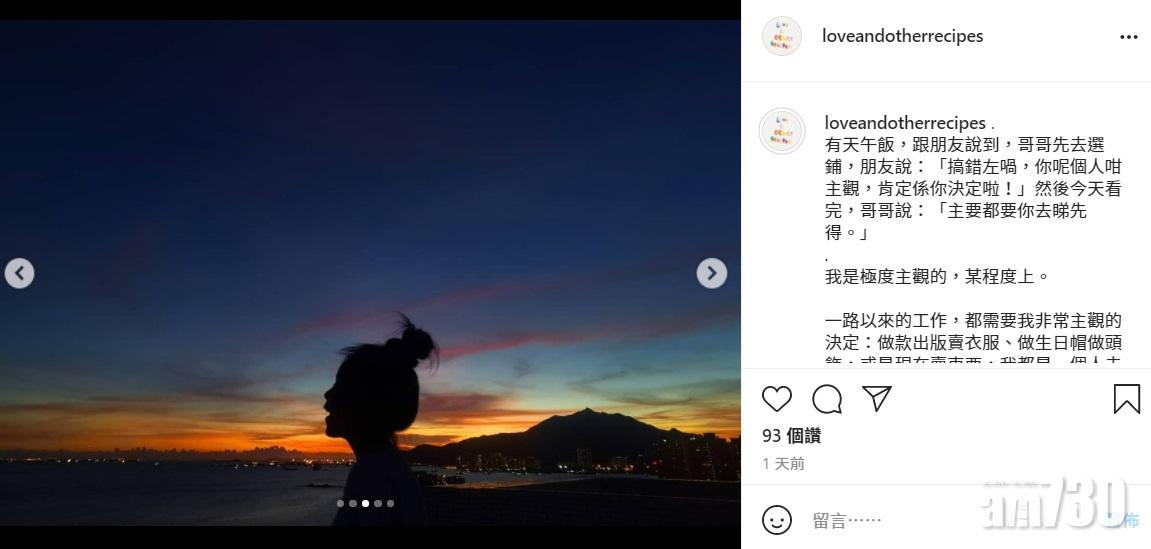 她在IG透露更多對新工作的感受。