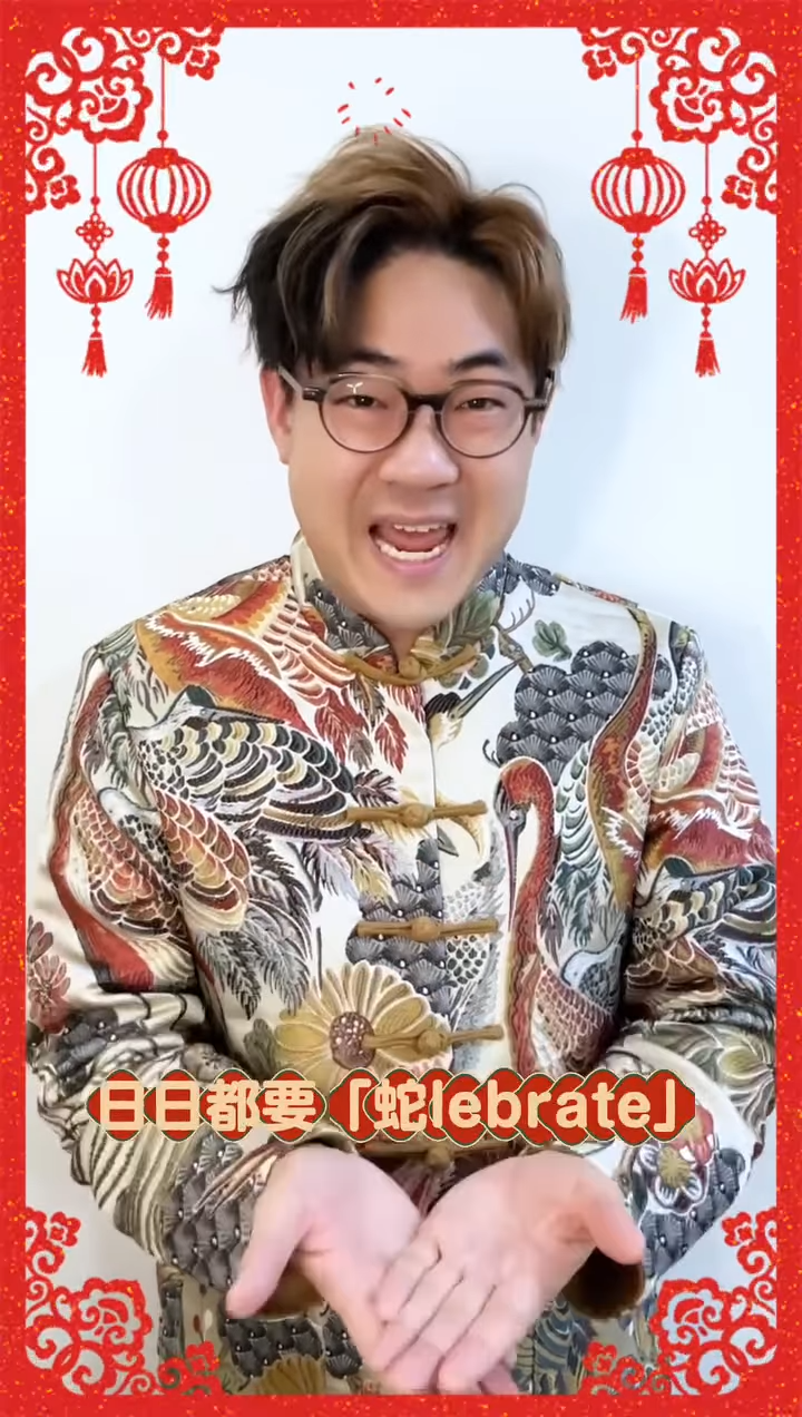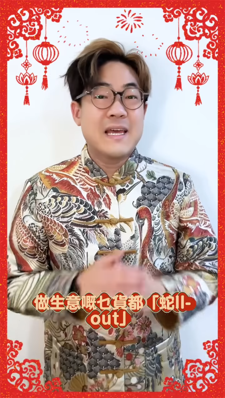 羅啟豪以四個帶「蛇」音的英文單詞,中西合璧地為觀眾送上四大祝福。