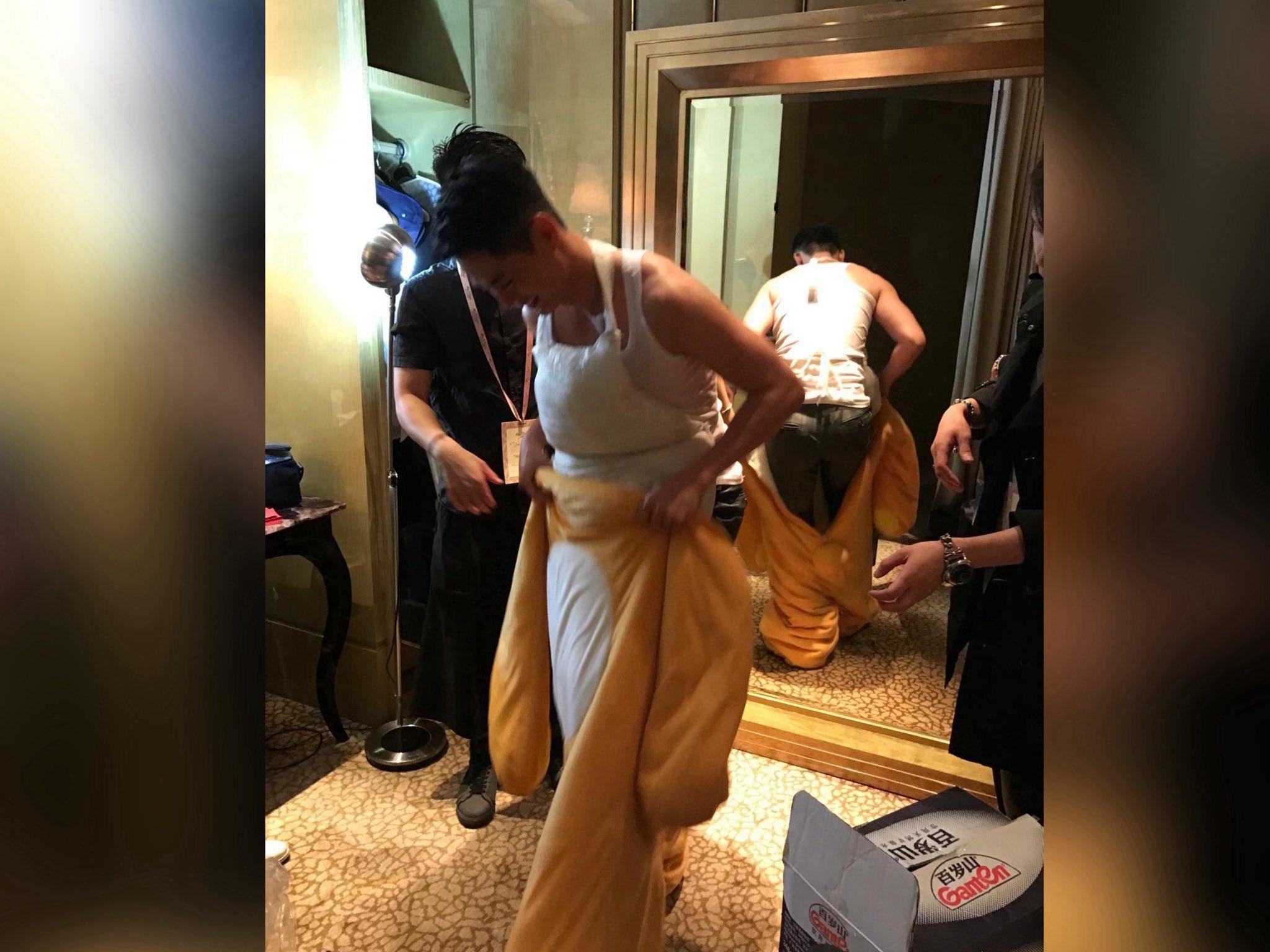 今日羅子溢在社交平台分享婚禮上扮鬆弛熊的花絮照,見到他在更衣室換上熊仔衫。翻看當年的影片,羅子溢唱《分分鐘需要你》時,因為太感動唱不太清楚,於是要求清唱一小段,搞到楊茜堯眼濕濕。他當時在表示自己追楊茜堯時扮過唐老鴨,因此決定將歷史重演,於婚禮上扮鬆弛熊,兩個卡通人物都是老婆最喜歡的。