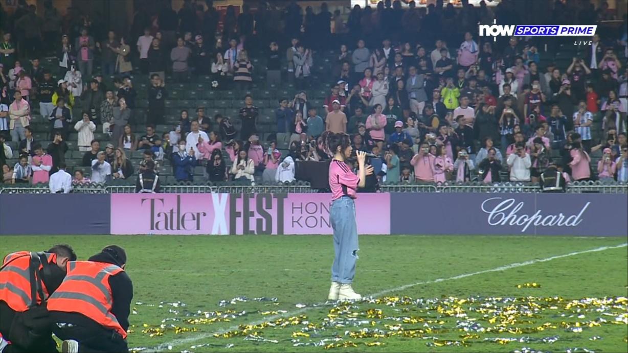 在場不少球迷不滿兼離場,大會此時安排G.E.M.鄧紫棋出場壓軸表現。由於會場有近4成人離開,因此直播畫面可見到有不少吉位,而G.E.M.依舊笑容滿面唱出《Amazing Grace》及以西班牙語唱出她的作品《Gloria》。當G.E.M. 唱《Amazing Grace》時,大會直播多次影住碧咸神色凝重在看。雖然看不到美斯,但仍見到有不少人舉機拍下G.E.M.的演出環節。