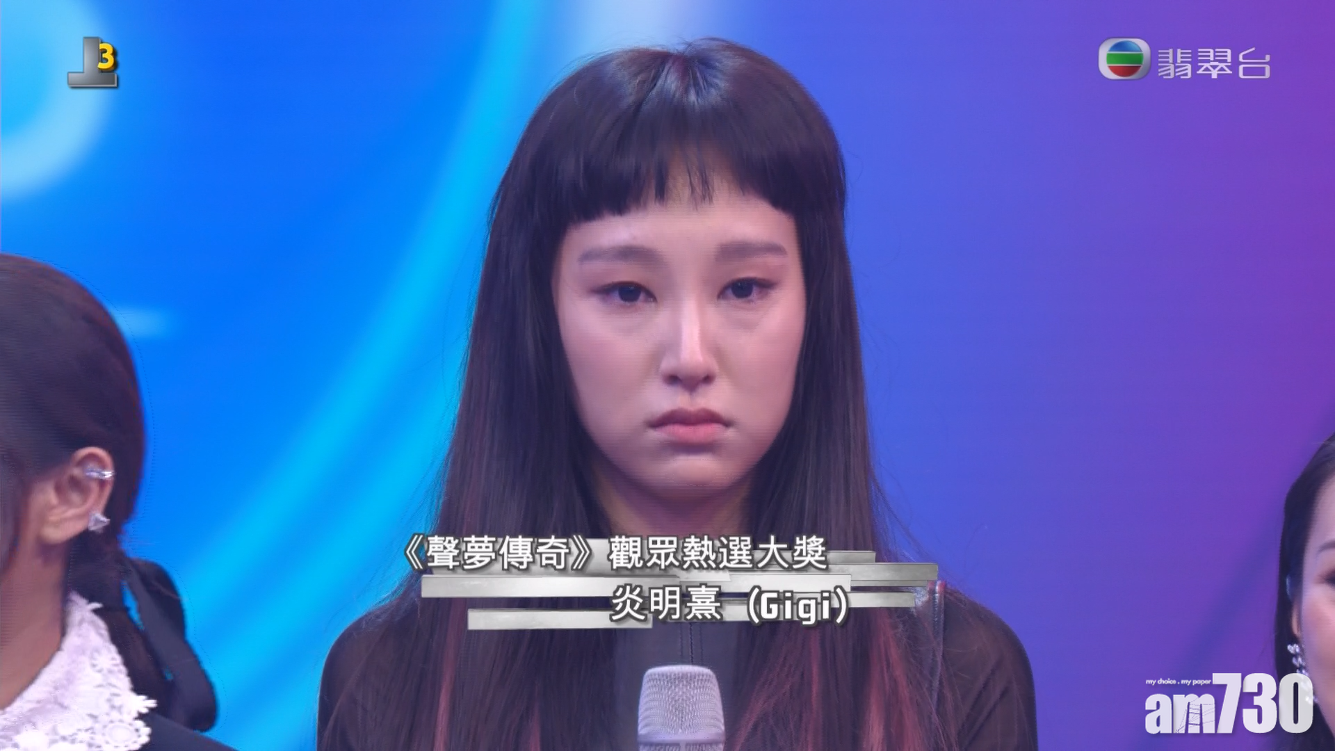 Gigi在台上哽咽向導師、隊友致謝,當她提到家人時更泣不成聲說︰「其實我仲要同姑丈、爹哋、媽咪講︰『我得咗啦!』我一直冇諗過攞獎,我一直目標係想返去探屋企人,姑丈話如果我拎到獎,你一定可以返去探佢哋。我希望呢個暑假得閒即刻搵佢哋,姑丈你睇唔睇到?」之後全場被Gigi的說話大為感動。