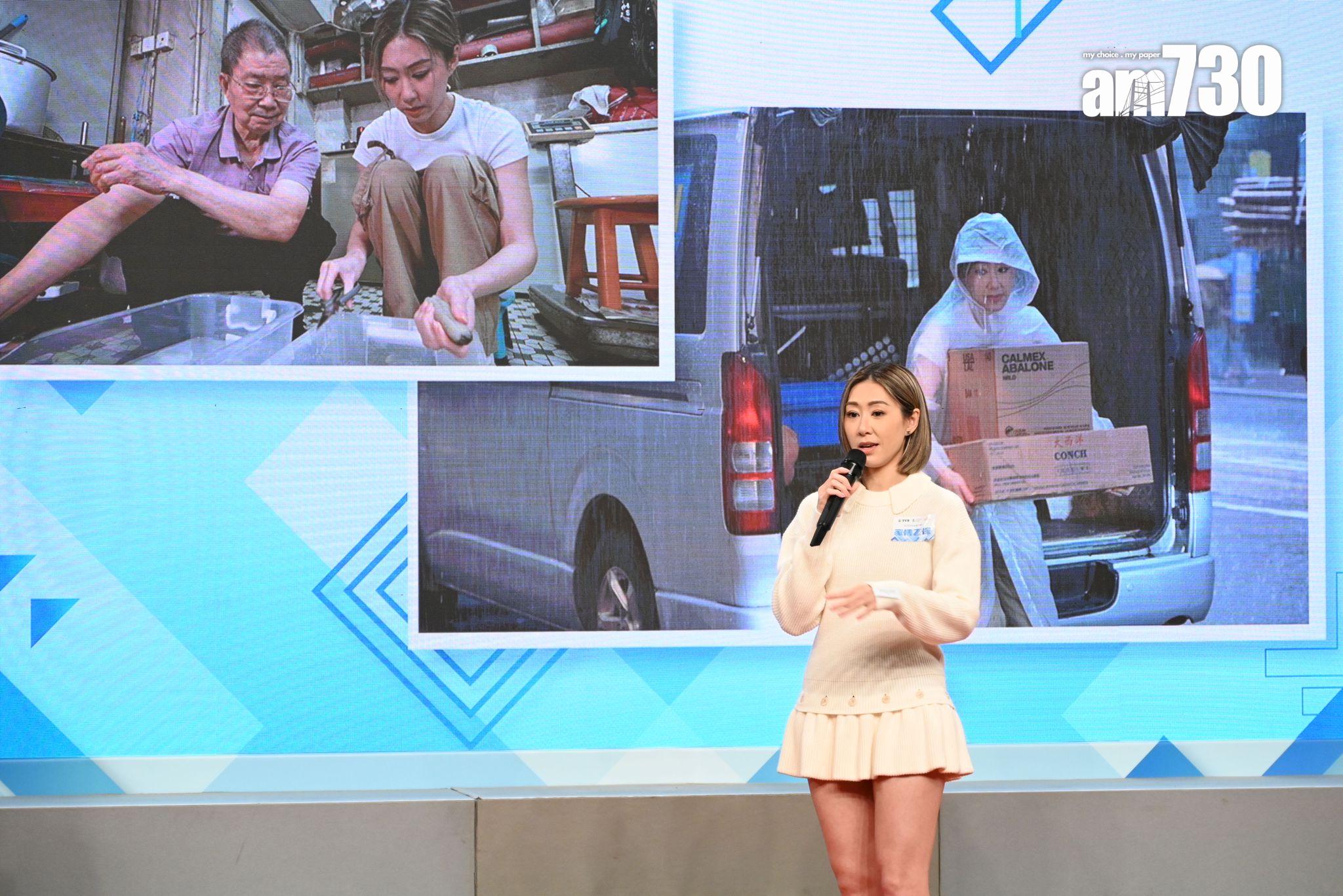 胡定欣昨日(27日)出席為無綫拍攝《家傳之「保」》宣傳,她在節目中和媽媽一齊出鏡,定欣更到海味店賣海味,體驗媽媽當年的工作。定欣表示今次節目令她增長不少知識,如花膠的品種,如何發海參。
