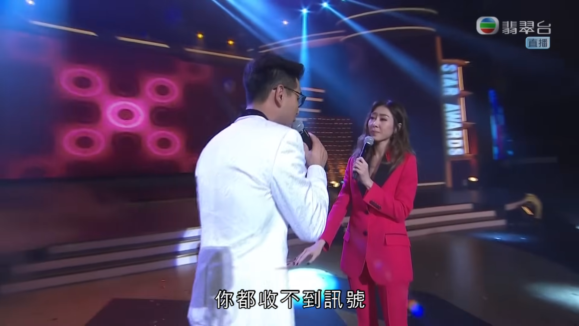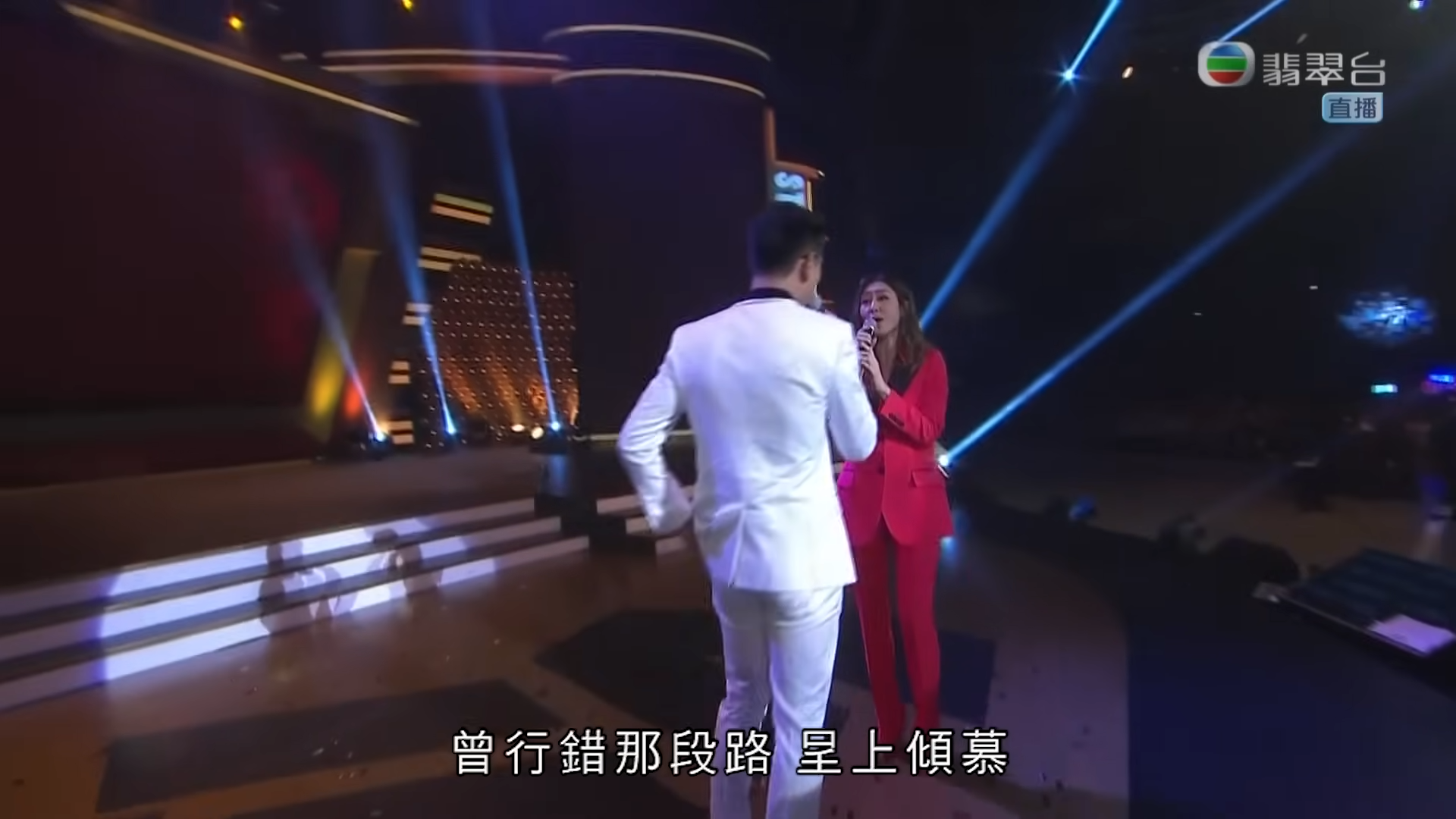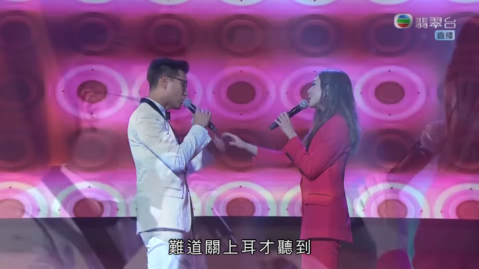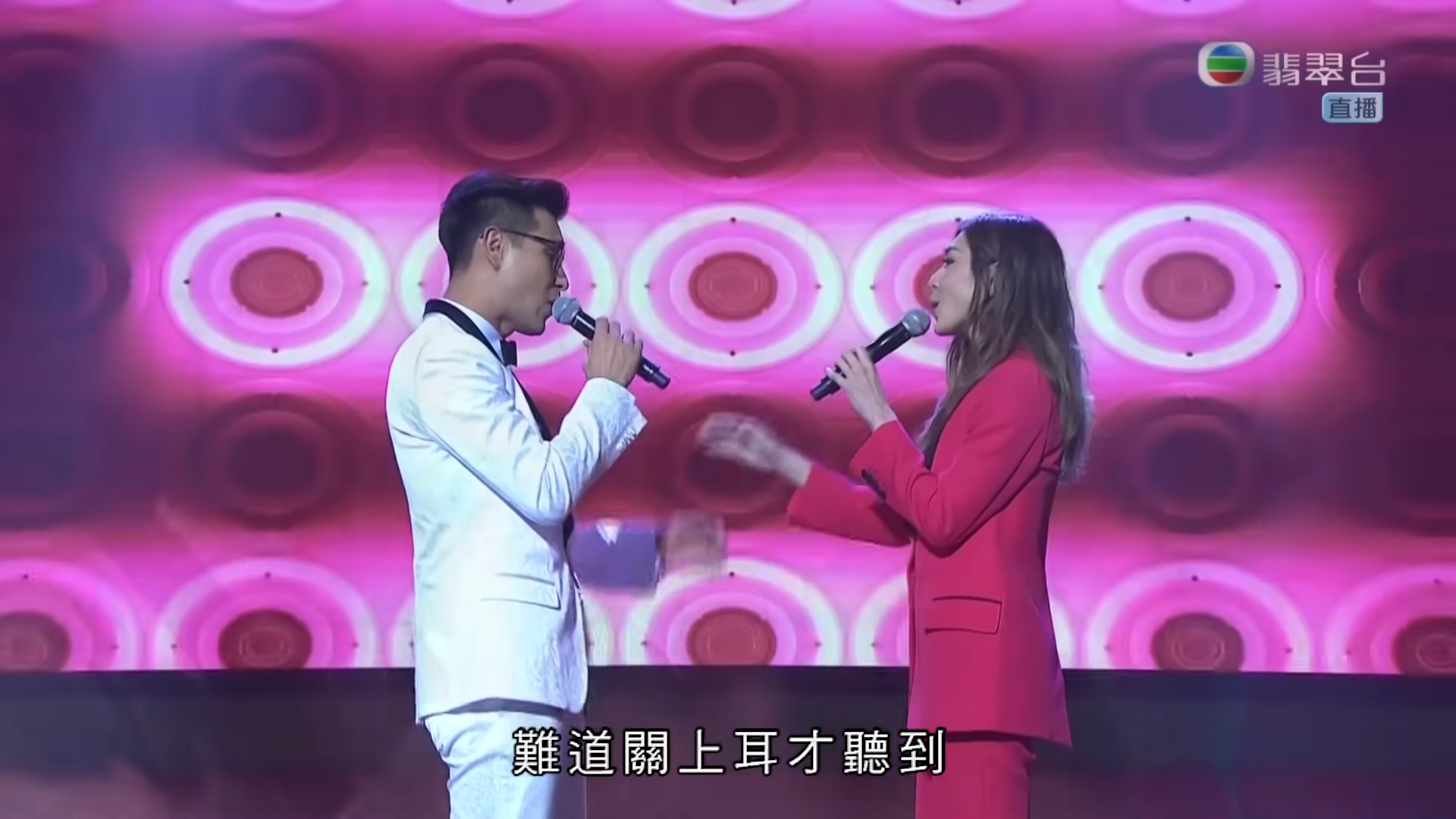 其後展鵬另一隻手有所動作,定欣再嘗試多一次,沒想到二人掂一掂,展鵬便很快縮手,但從現場畫面見到,可能展鵬見畫面突兀,很快又換了手跟定欣拖了幾秒便放心,唱至尾段則摸住對方的腰部。