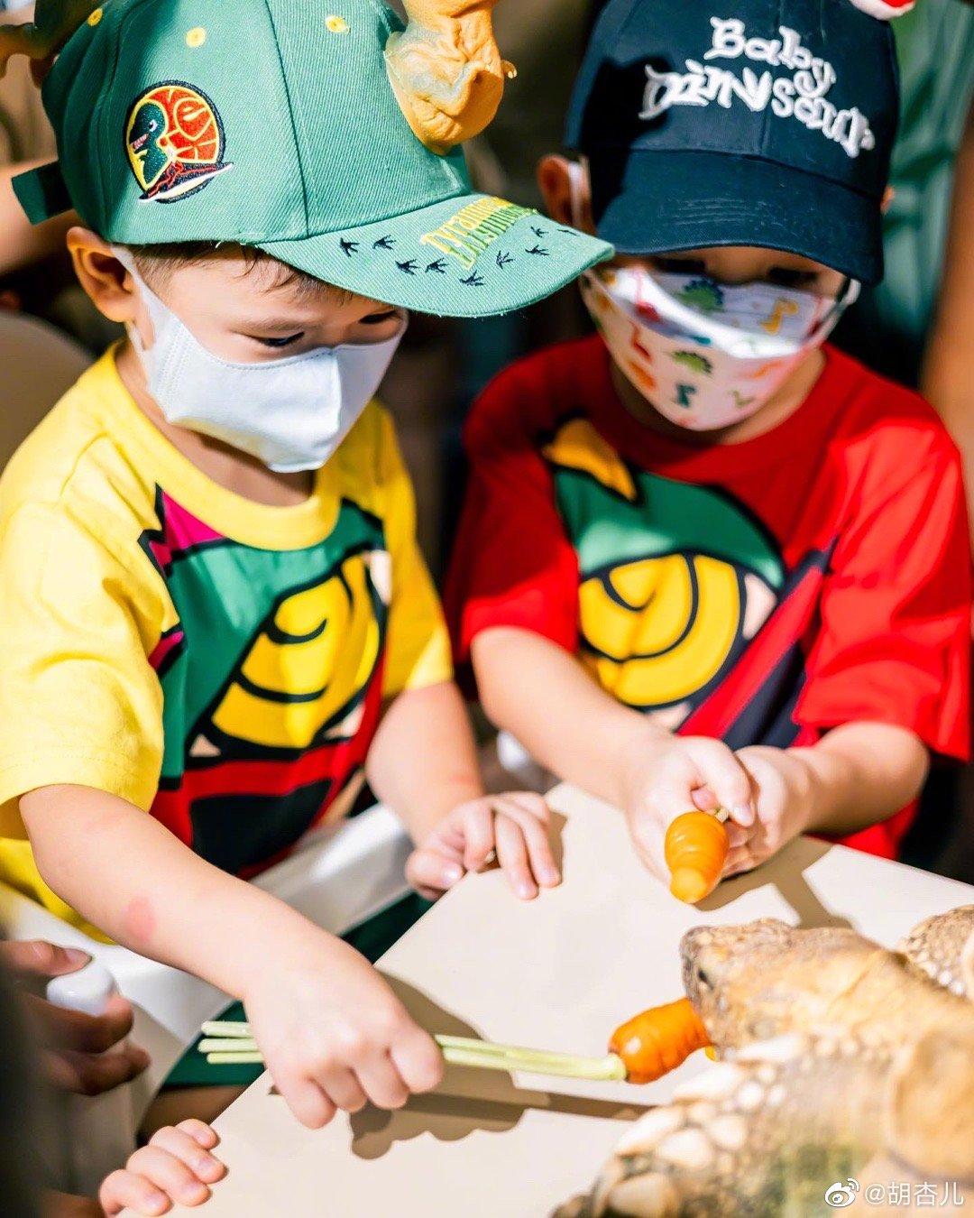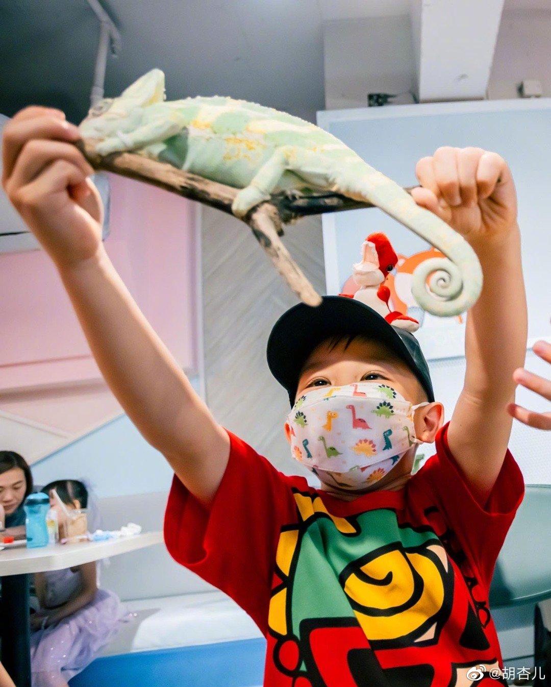 杏兒留言說︰「Ryan 3 歲了,謝謝大家來參加奕霖的生日派對,奕霖很喜歡動物,尤其是恐龍和鯊魚,這次有那麼多動物和他一起過生日他真的很開心,孩子們都很勇敢,媽媽如果看到肯定會第一時間飛奔走開!」Philip則為囝囝準備了一個恐龍蛋糕,他表示一切都是由杏兒去安排,希望Ryan待媽媽及弟弟回港時,要好好愛錫他們。他又指囝囝這年大得很快,也學會說很多事。