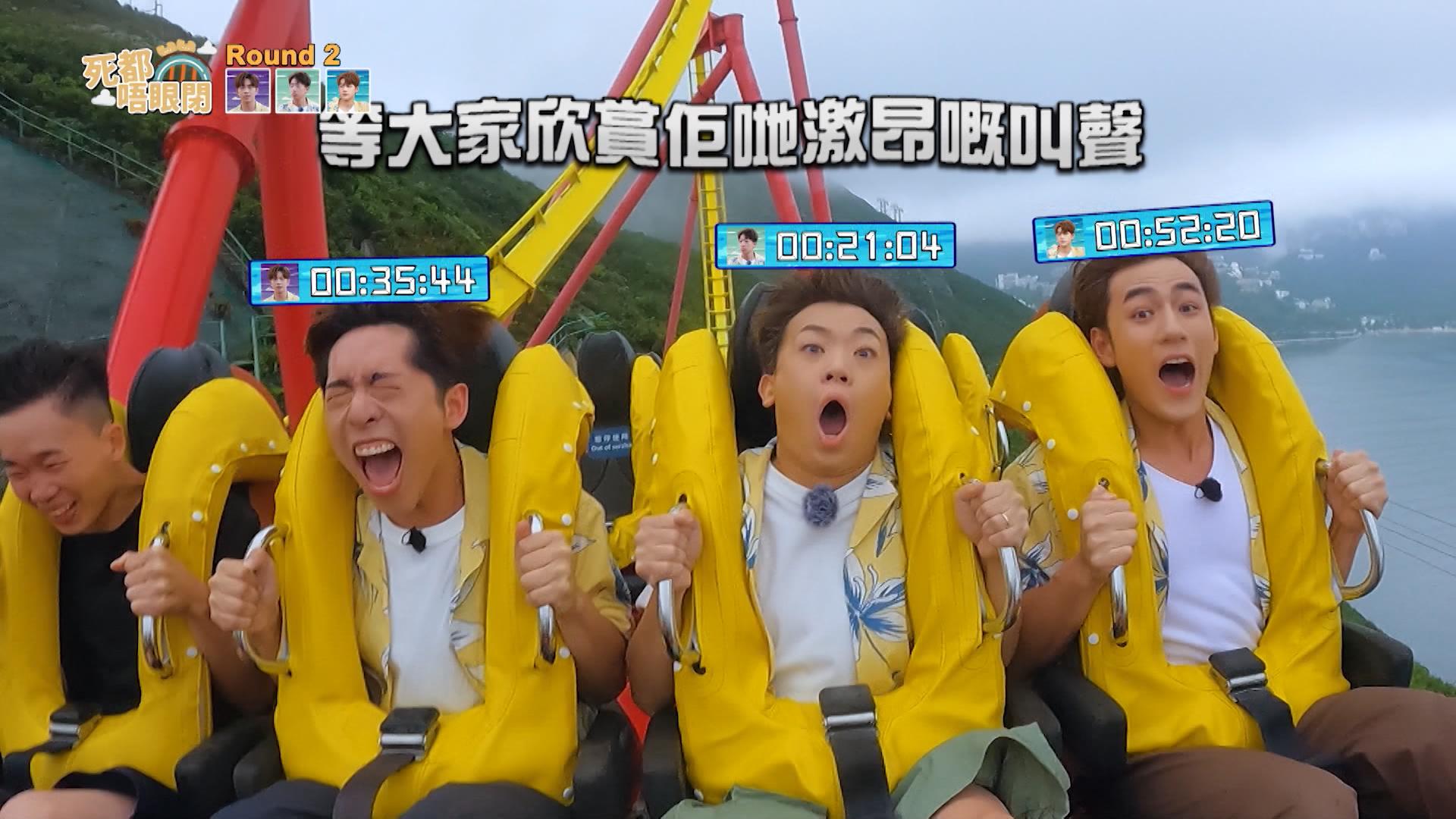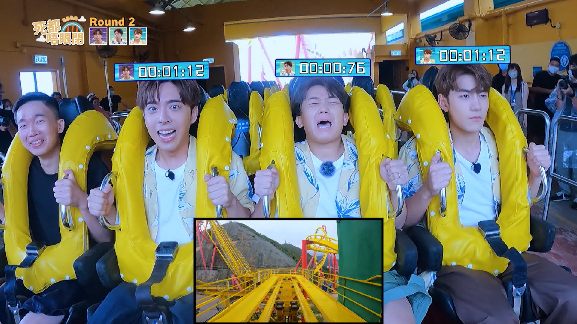 而另一個遊戲「死都唔眼閉」,6位膠人需要擘大雙眼望著鏡頭坐過山車,瞪開眼睛時間最長一位為勝出者。向來畏高的Edan露出經典驚青樣,不停大叫,而珈其比Edan更驚,多次企圖臨陣退縮,要隊員把他捉回來,而阿正就緊張到想大便,場面搞笑。