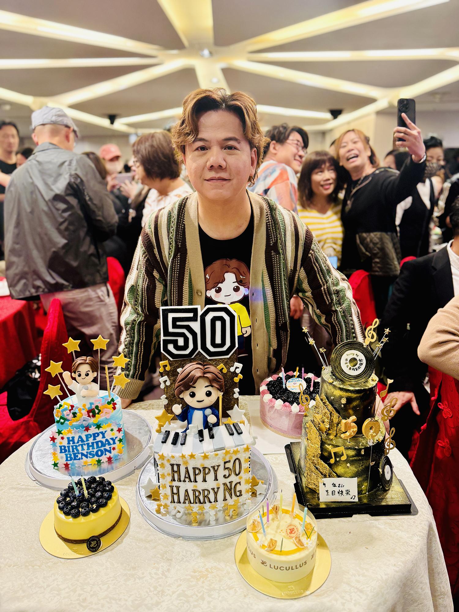 昨日(21日)是伍仲衡的50歲生日,他在黃埔舉行生日會筵開33席,同場仲有《中年好聲音》的學員及評審到場祝賀,包括肥媽、周國豐、周吉佩、顏志恒、吳大強及涂家堯等,另外劉威煌、區永權、何婉盈等也有到場,非常熱鬧。黑妹李麗霞與肥媽送給伍仲衡大利是,支嚳儀親手做了一個三層CD蛋糕給他。