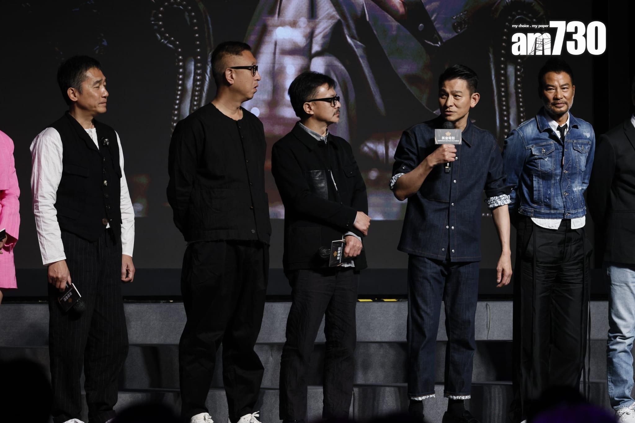 今日發布會紅星雲集,莊文強執導的《金手指》可謂最矚目,事關梁朝偉和劉德華自《無間道》之後再度拍檔,今次梁朝偉罕有地邪氣十足,扮演受過高等教育之角色,卻成為最大詐騙集團主腦,而劉德華飾演調查員,跟很多人有對手戲,同片還有方中信、陳家樂、蔡卓妍、岑珈其等,方中信笑言能夠跟兩位影帝合作,就算唔收錢都制!