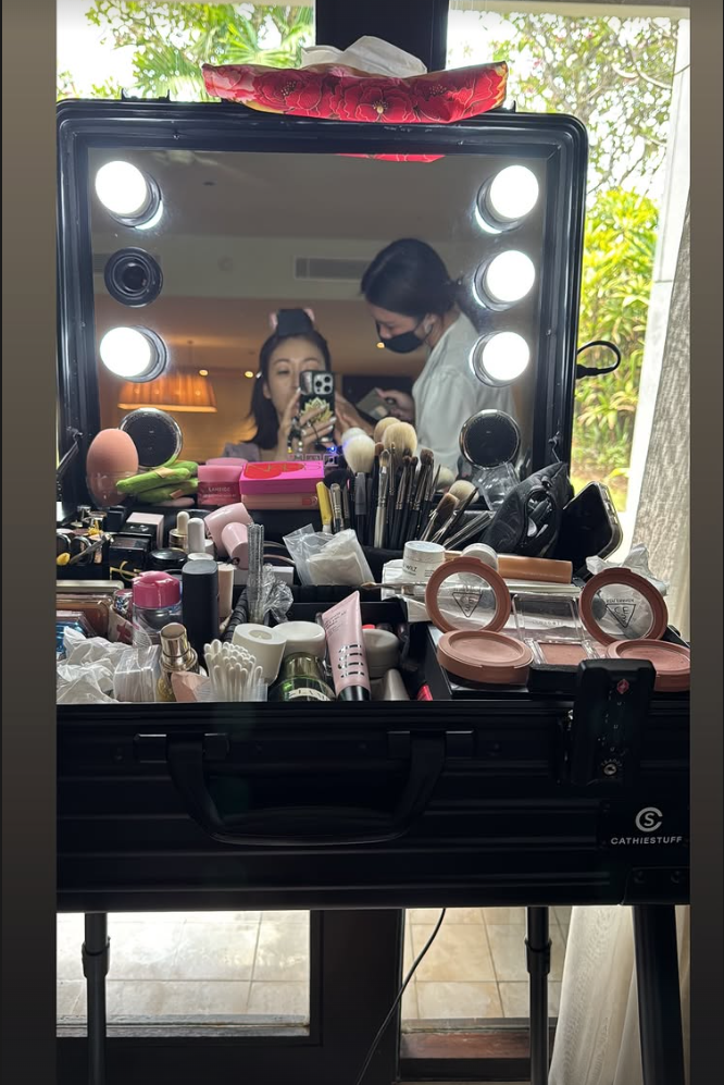 現年45歲的莊思敏(莊鍶敏)今日爆出再婚消息,與拍拖未夠兩年的高級督察黃耀彬結為夫妻,並飛往峇里島舉行婚禮,再做新娘的莊思敏今日在IG限時動態貼出自己鏡前自拍,為婚禮化妝進行準備。