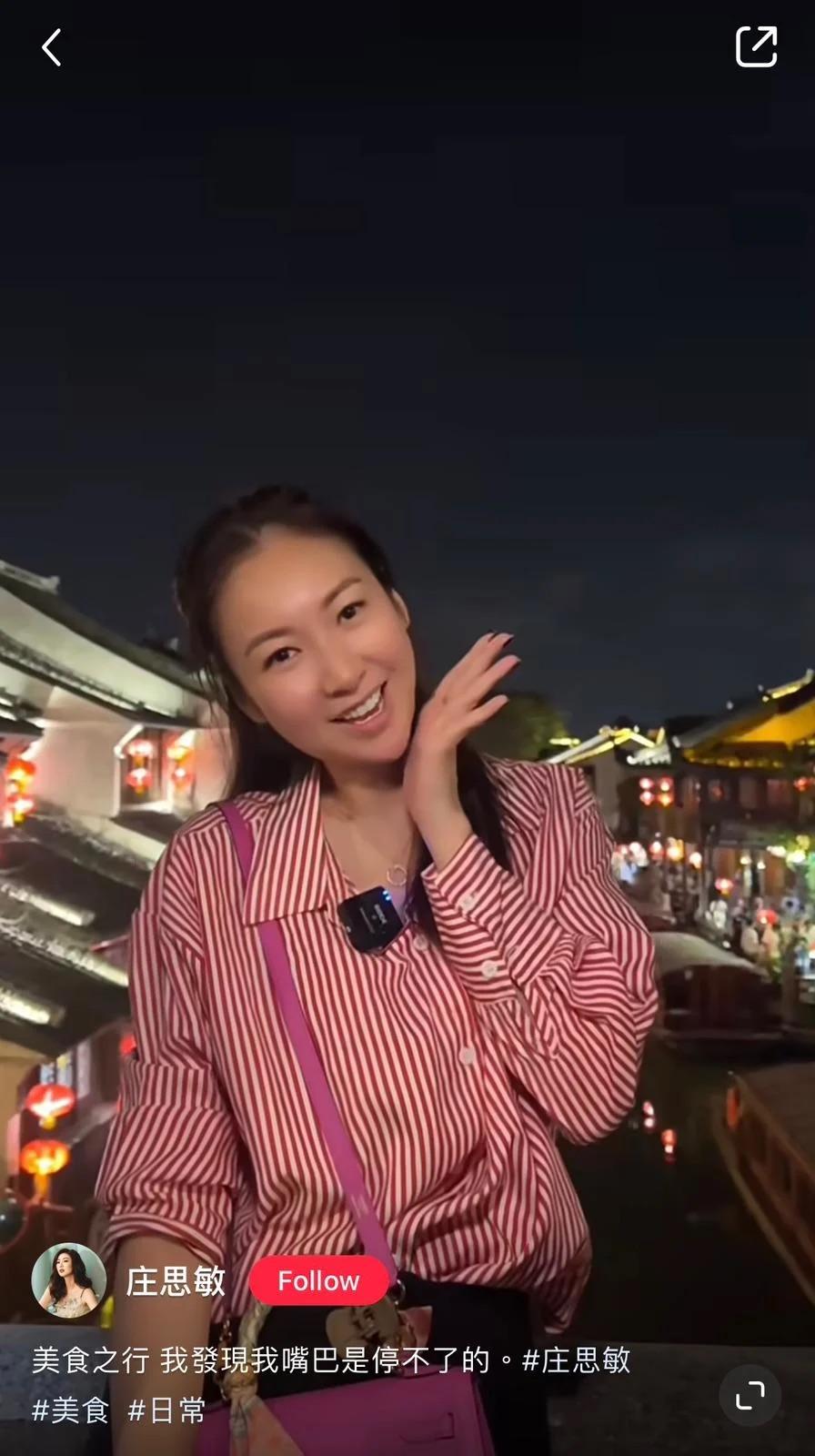 莊鍶敏(Jacquelin)日前由馬來西亞返港,協助警方調查JPEX案後,隨即赴佛山拍電影,日前喺小紅書發布一段以「蘇州之行 『魚蛋媽』被『彈鐘』」為名嘅影片,影片中佢一身斯文紅色間條恤衫襯黑色短裙,肌膚若隱若現,優雅不失性感,不過佢喺遊妓女街時,竟然爆出一句:「我想嘗試做『妓女』」。