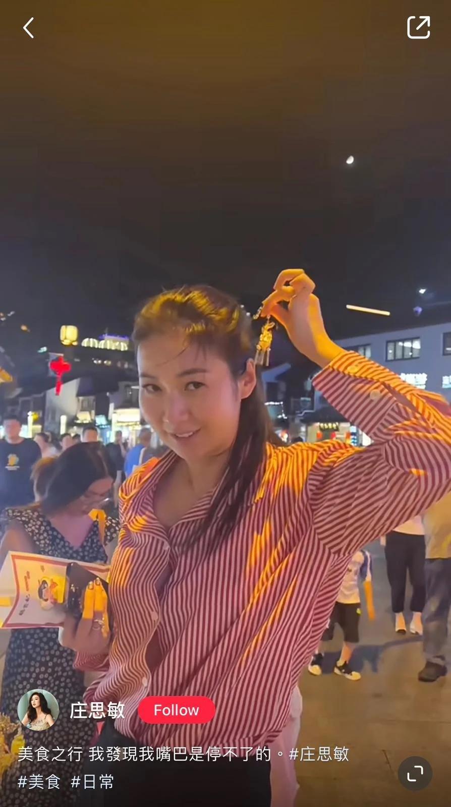 莊鍶敏遊覽嘅係當地著名嘅山塘街,佢似乎很享受這趟美食之行,各種美食都食過不停,買到兩手也拿不過來,完全冇拿督千金嘅包袱。