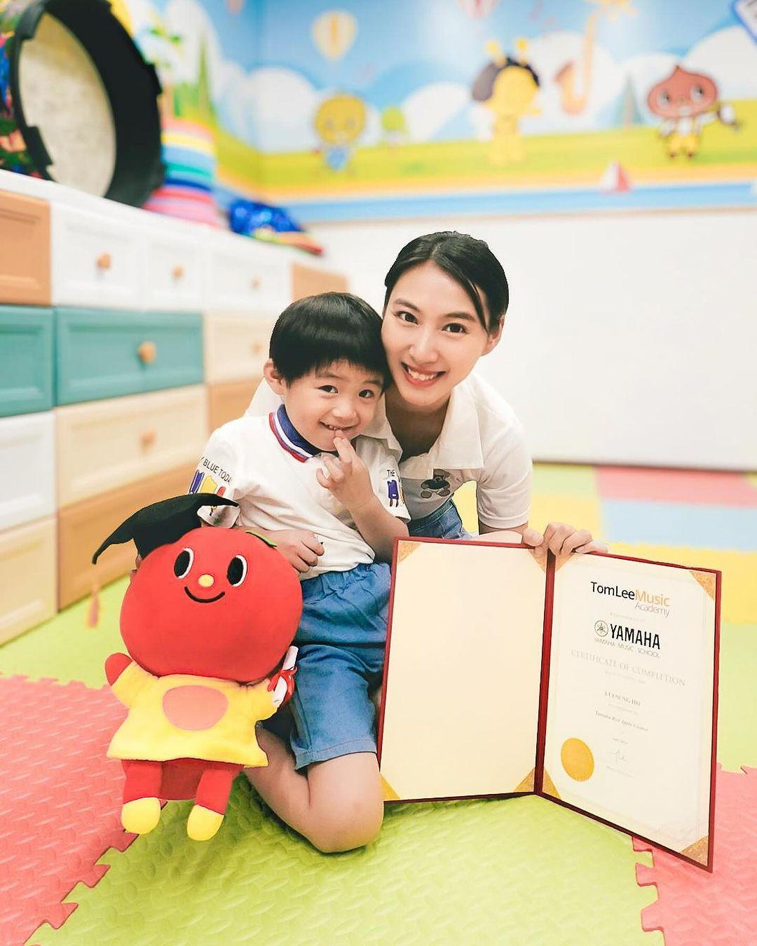 她表示今個星期是學校主要是讓小朋友熟習校園環境,所以會陪囝囝上堂1小時。問到有沒有家長認出她,她表示沒有化妝,而且更戴上眼鏡,打扮跟一般媽媽無異,相信不會有太多家長認到她。她表示囝囝未入幼稚園時,有為他報讀playgroup及N班,自己都是負責管接送,但望著囝囝讀幼稚園,感覺仍然很興奮。她續指囝囝不太愛說話,希望囝囝過一段日子會像同學仔般主動舉手發言。她表示囝囝返學首日未有哭泣,而且更很期待上學,令她心感安慰。