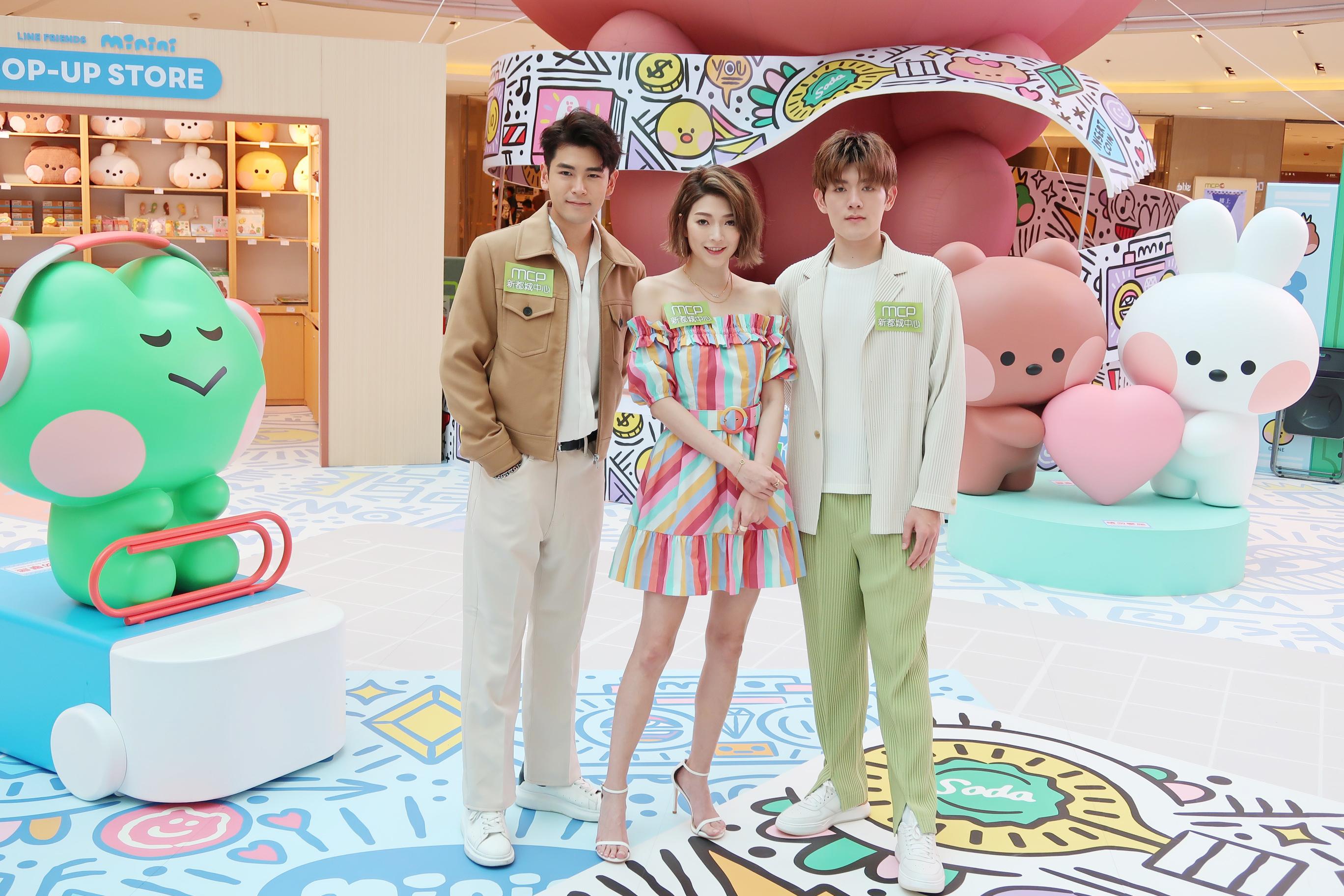 Shiga與英皇新人黎峻、洪助昇到將軍澳出席商場活動。